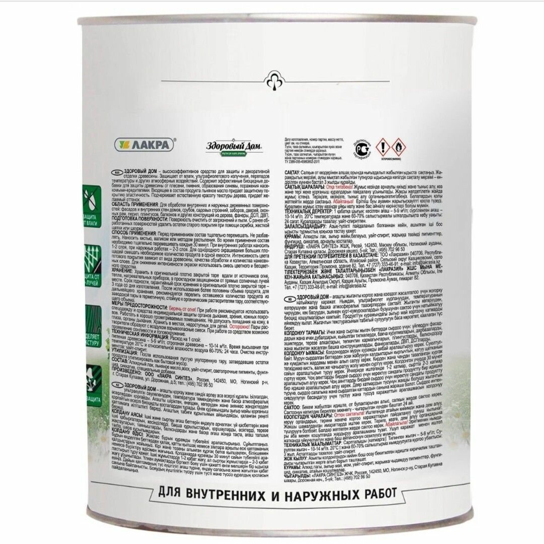 Средство для Защиты Древесины Здоровый Дом 0.8л Бесцветный, Алкидная для Внутренних и Наружных Работ.