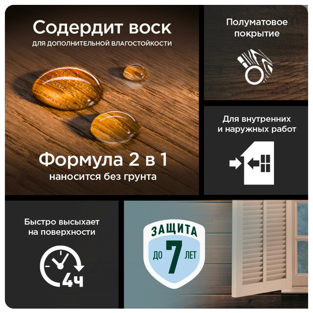 Пропитка Универсальная Pinotex Universal 2 в 1 2.5л Береза Полуматовая на Водной Основе для Защиты Древесины до 7 Лет / Пинотекс Универсал.