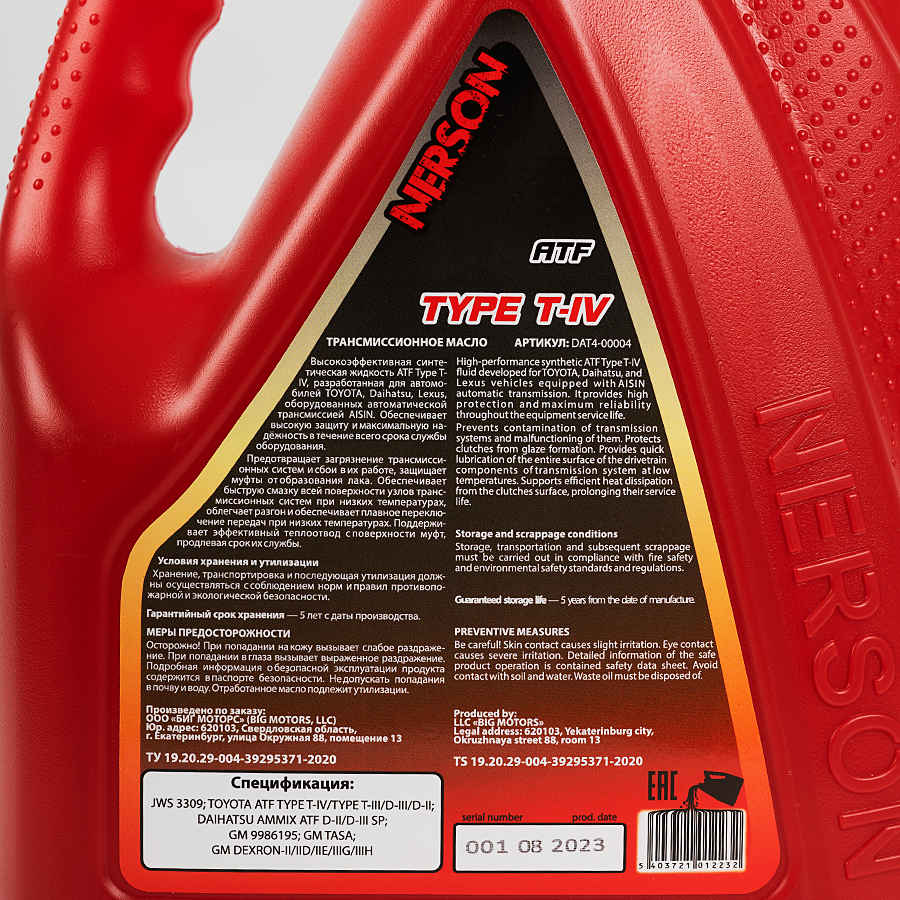 | Допуски OEM | Daihatsu AMMIX ATF D-III Multi / GM 9986195 / GM Dexron II / GM Dexron II D / GM Dexron II E / GM Dexron III G / GM Dexron III H / GM TASA / JWS 3309 |