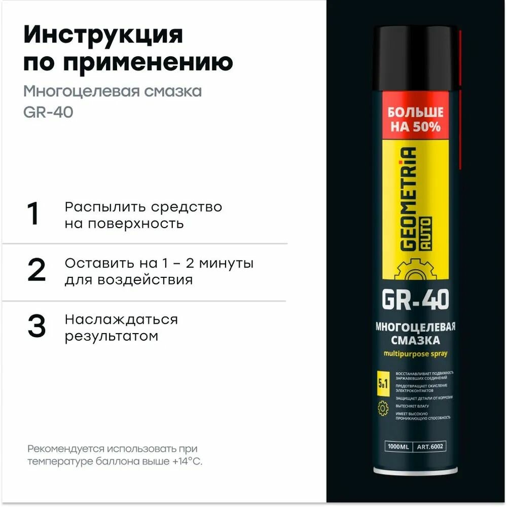 Многоцелевая смазка универсальная GR-40 GEOMETRIA, 1000 мл / 6002 (WD) х 3 шт. информация:
