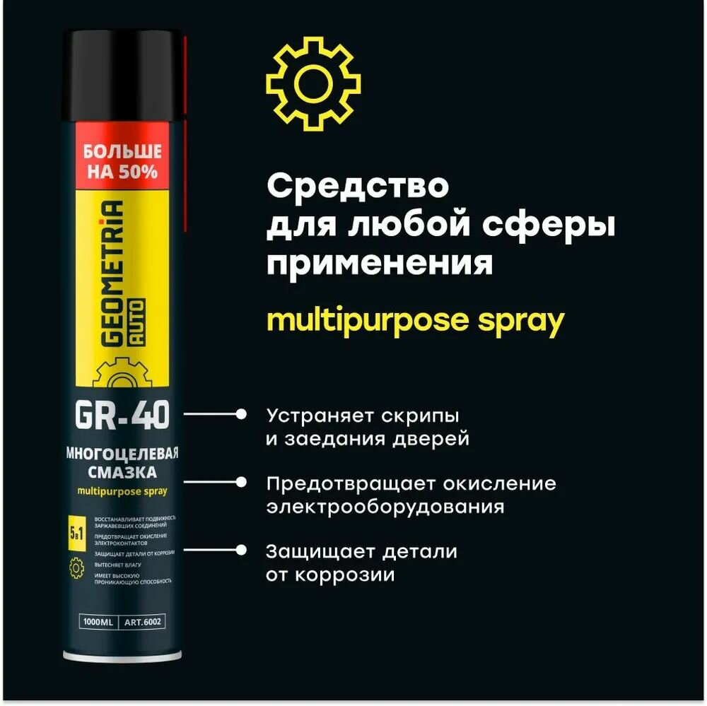 Отзывы на Многоцелевая смазка универсальная GR-40 GEOMETRIA, 1000 мл / 6002 (WD) х 3 шт.