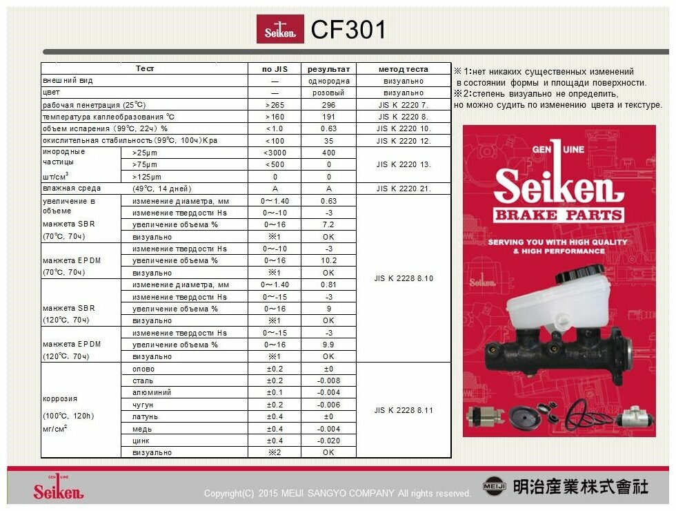 Смазка для суппортов и резиновых элементов тормозной системы Seiken CF301 информация: