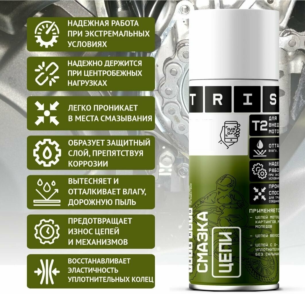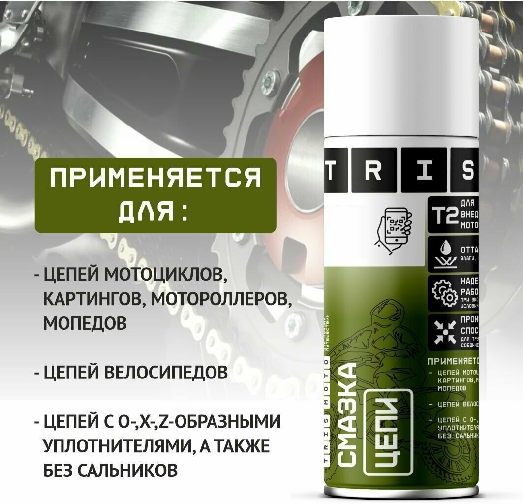 Отзывы на Смазка цепи T2 для цепей внедорожных мотоциклов, велосипедов, мотороллеров и мопедов, TRIS, 500 мл.