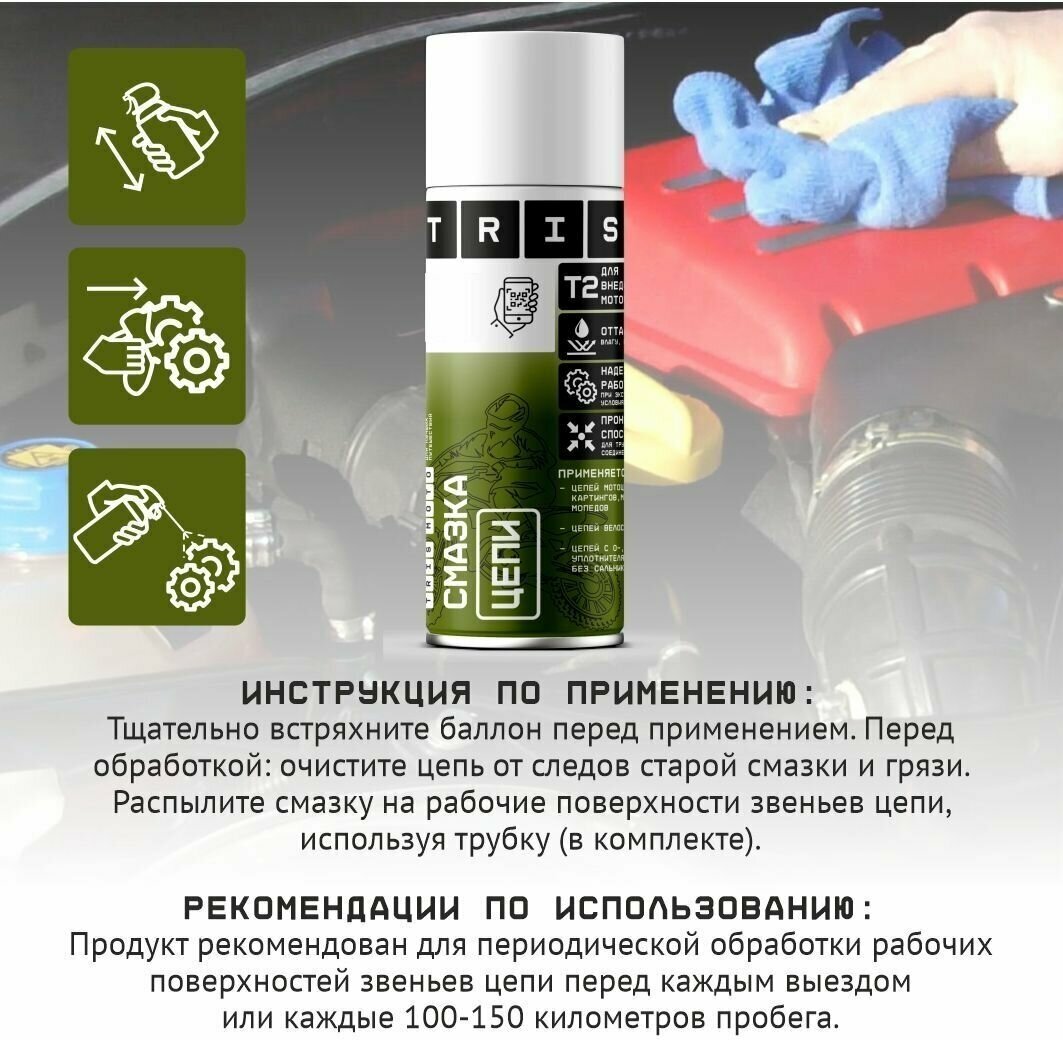 10 цен на Смазка цепи T2 для цепей внедорожных мотоциклов, велосипедов, мотороллеров и мопедов, TRIS, 500 мл.