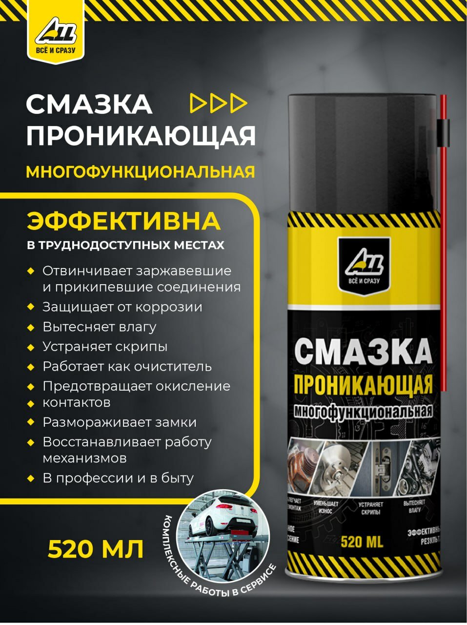 Отзывы на ALL Смазка проникающая многофункциональная 520 мл (аналог WD-40)/жидкий ключ/универсальная/ 12 шт. в коробке