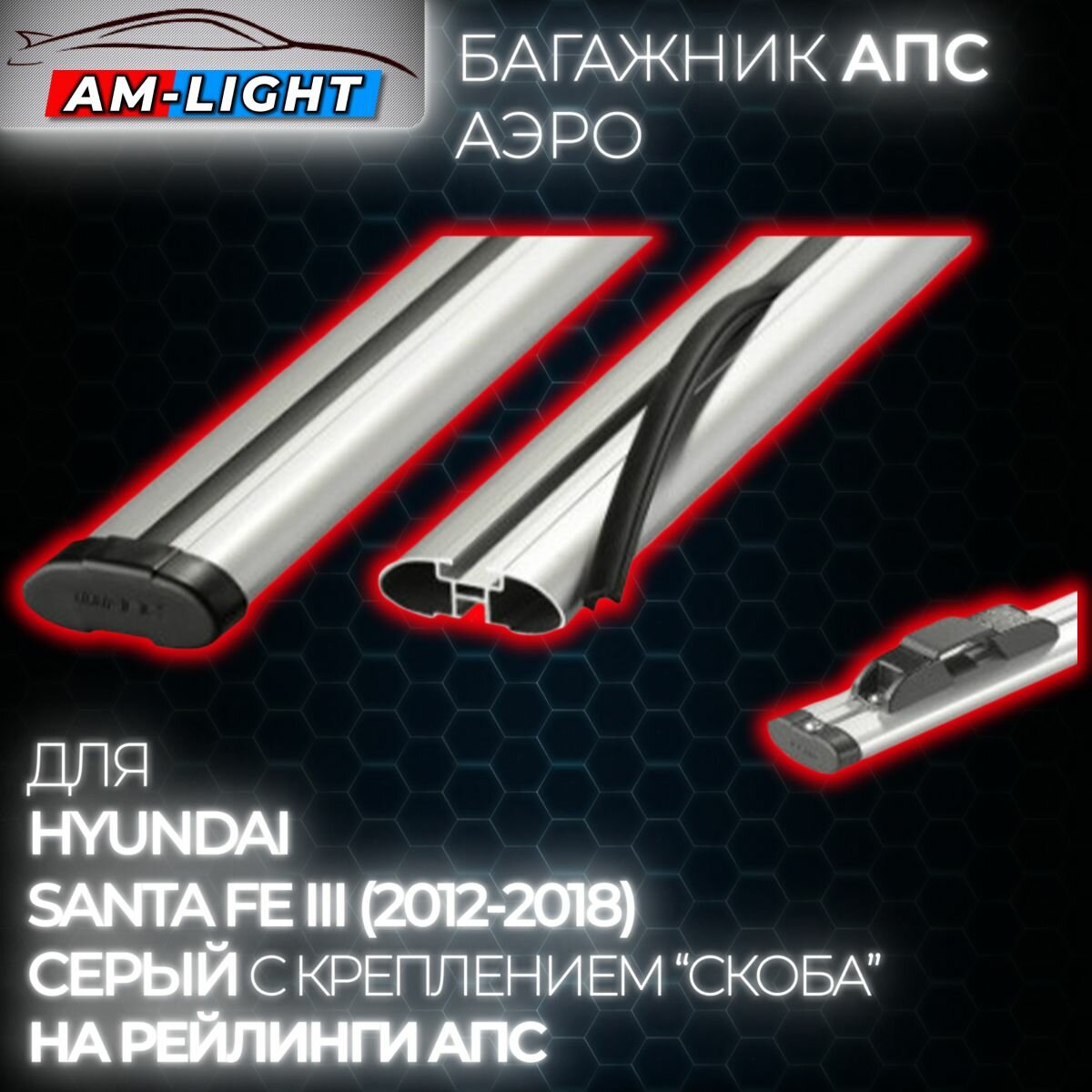Багажник АПС аэро на рейлинги АПС для Hyundai Santa Fe III (2012-2018) (Хендай Санта Фе), 130 см, серый (комплект) информация:
