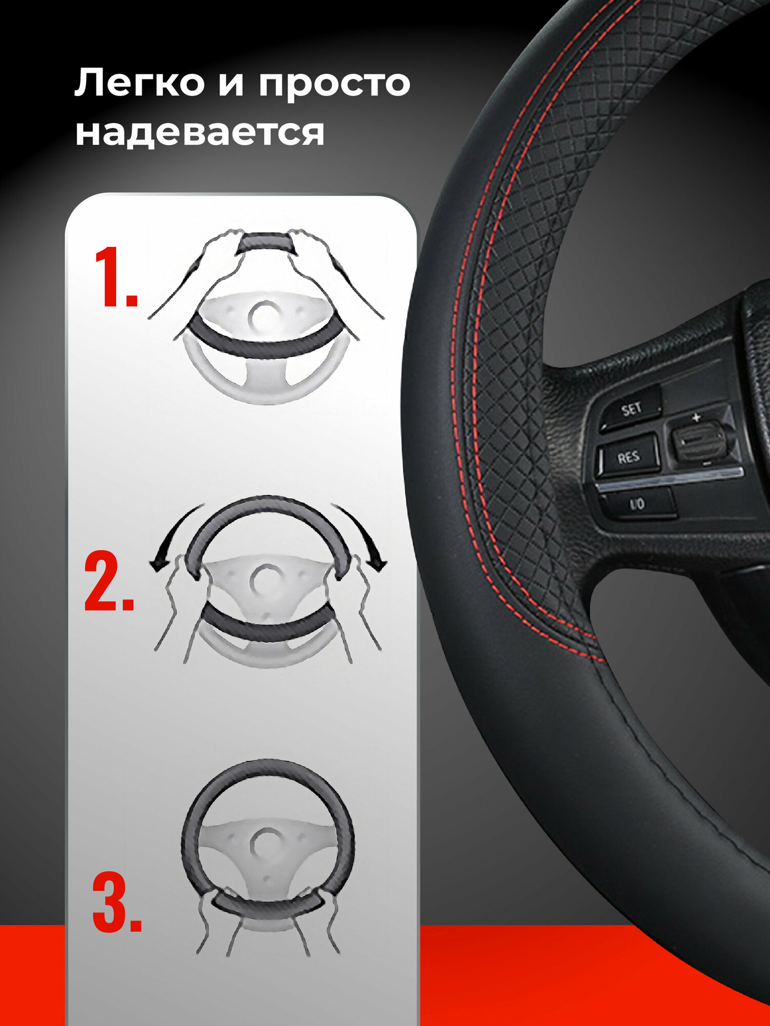 Оплетка на руль WELHOME универсальная 37-39см, черная с красной ниткой 519 ₽