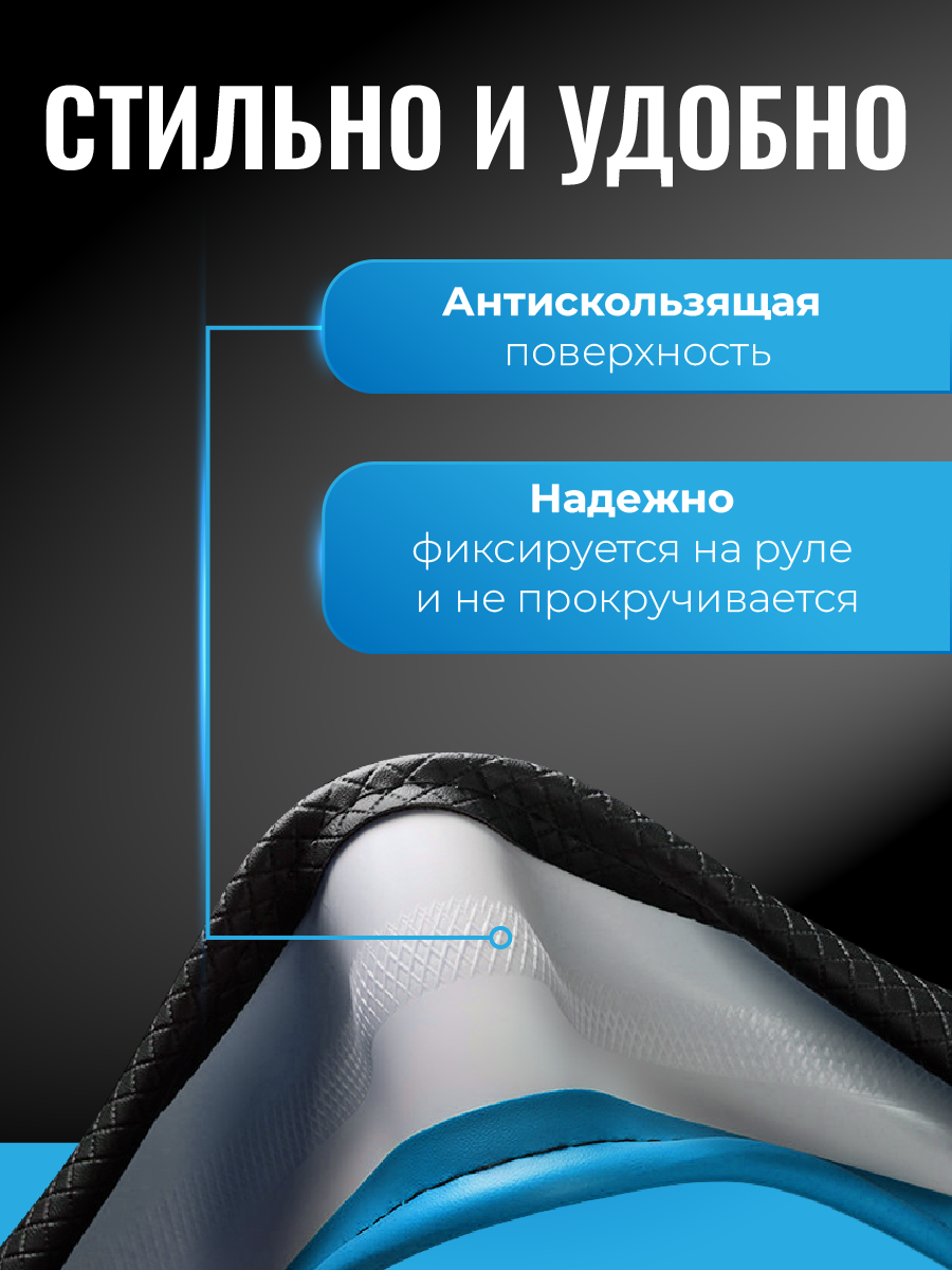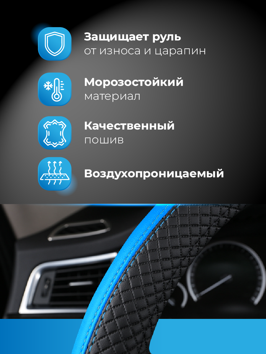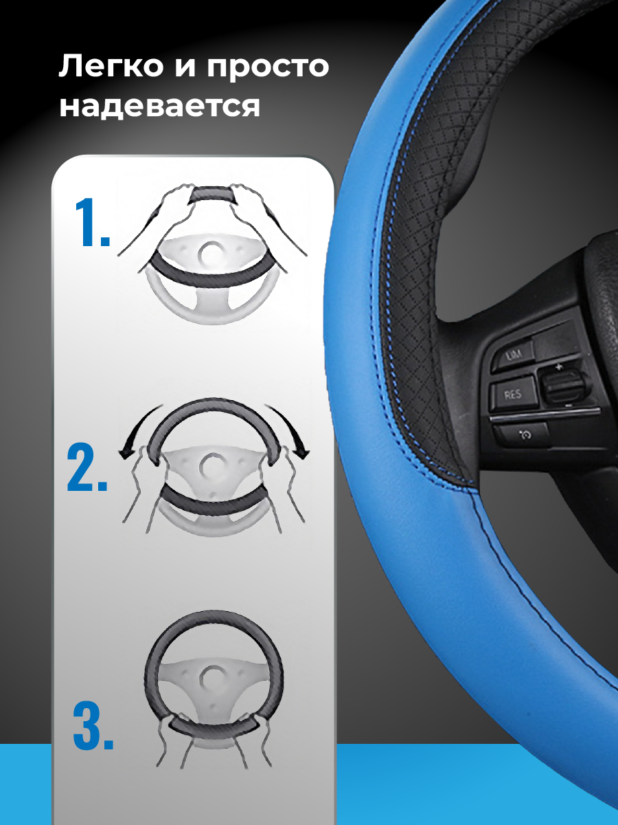 Оплетка на руль WELHOME универсальная 37-39см, голубой информация: