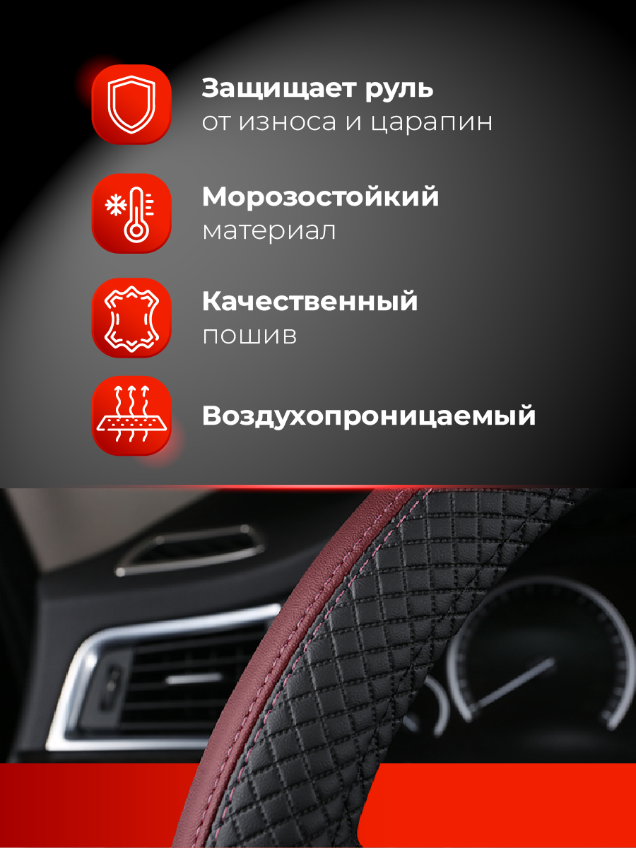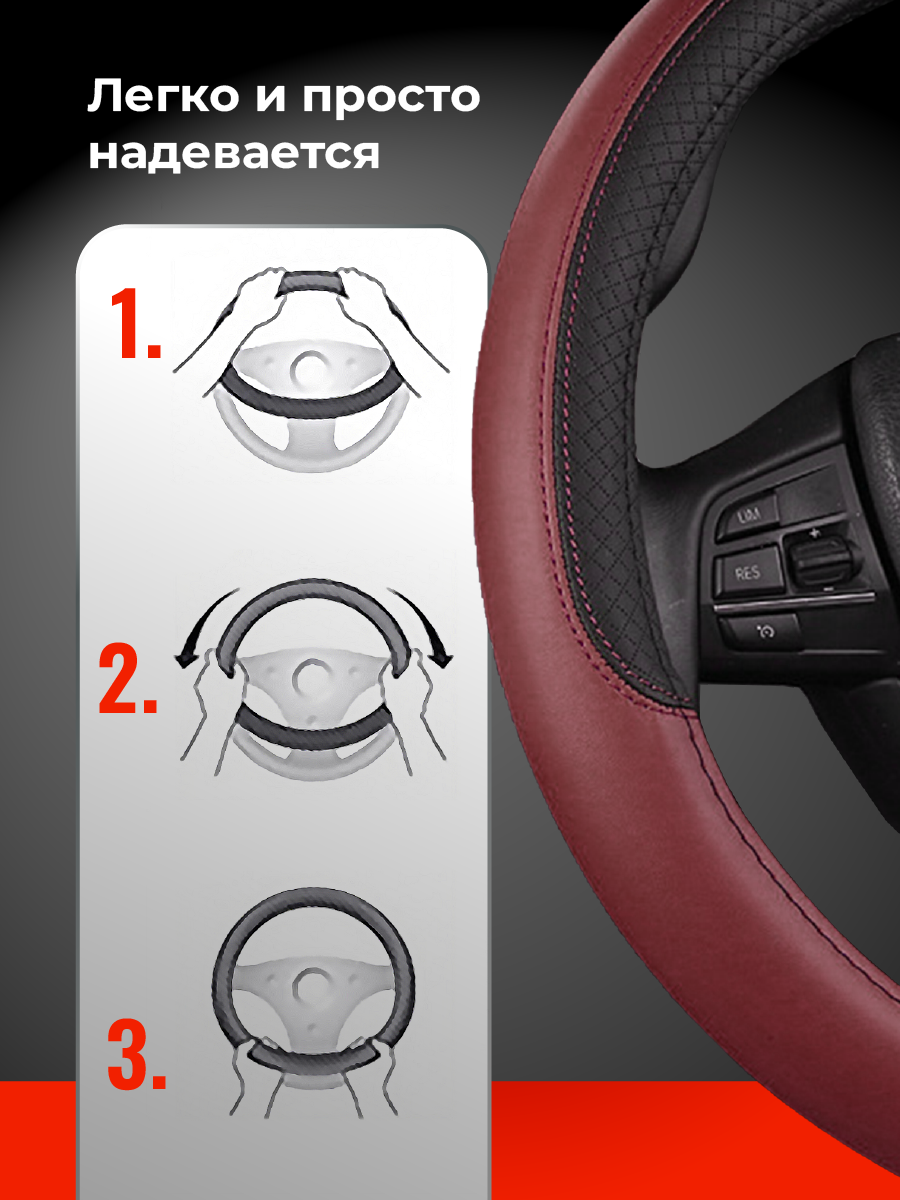Оплетка на руль WELHOME универсальная 37-39 см, бордовый информация: