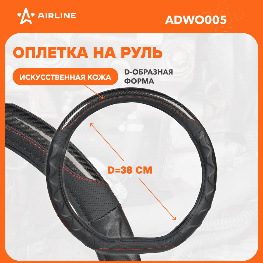 Оплетка на руль, экокожа, D-образная форма, рельеф, текстура карбон, черная, 38 см/M ADWO005 AIRLINE информация: