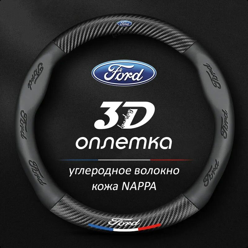 Отзывы на Чехол оплетка на руль Ford Форд fusion mondeo focus fiesta kuga круглая форма c карбоновой вставкой