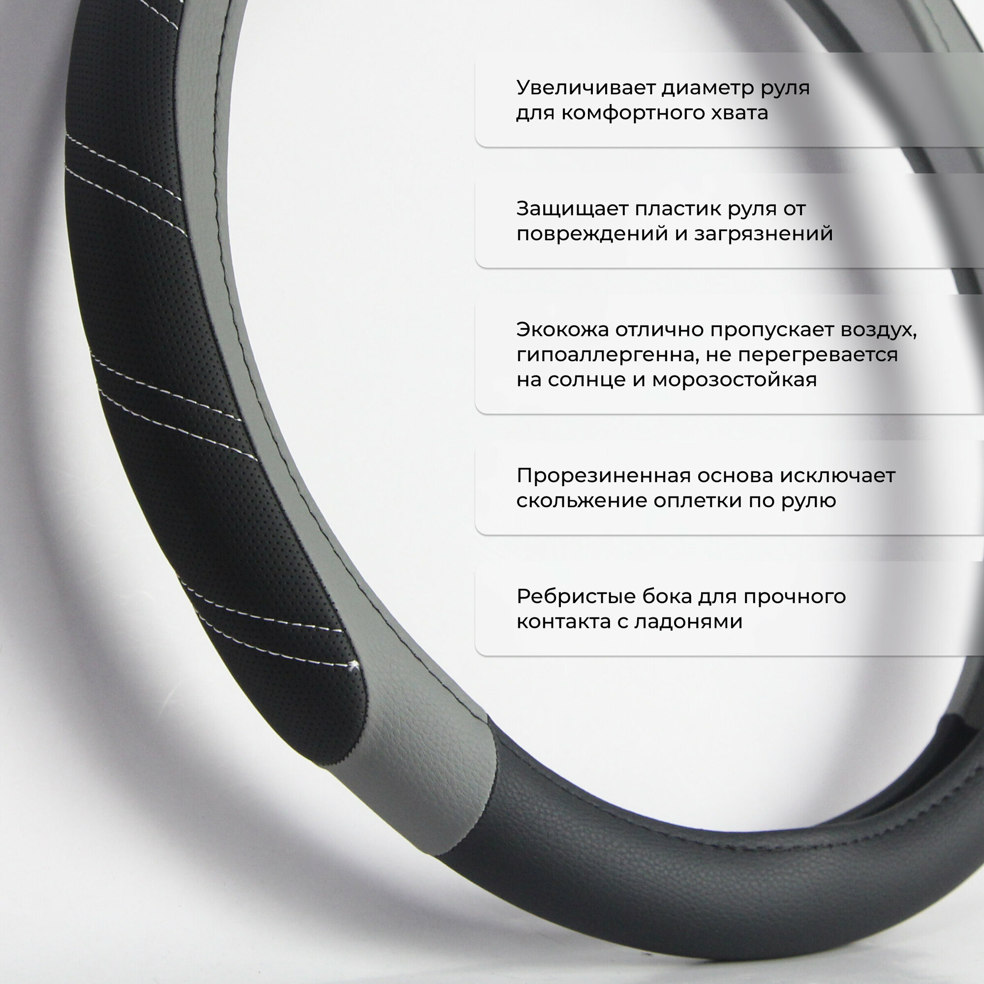 10 цен на Оплетка на руль PSV OVERLAY (Черно-Серый) M, экокожа PSV 136070 | цена за 1 шт