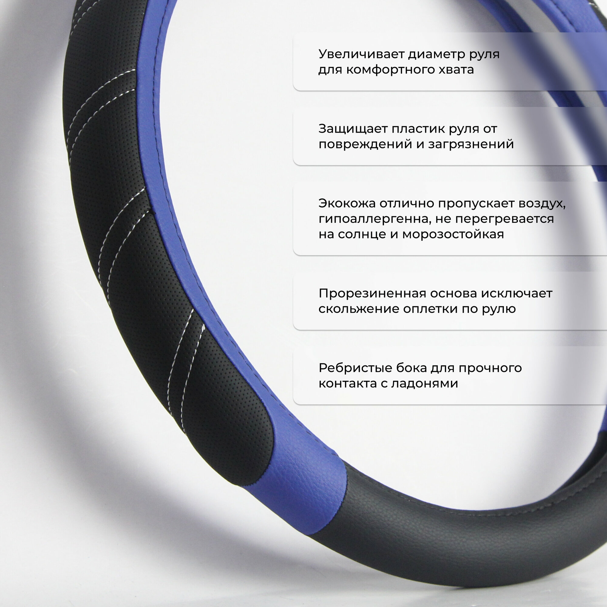 10 цен на Оплетка на руль PSV OVERLAY (Черно-Синий) M, экокожа PSV 136073 | цена за 1 шт