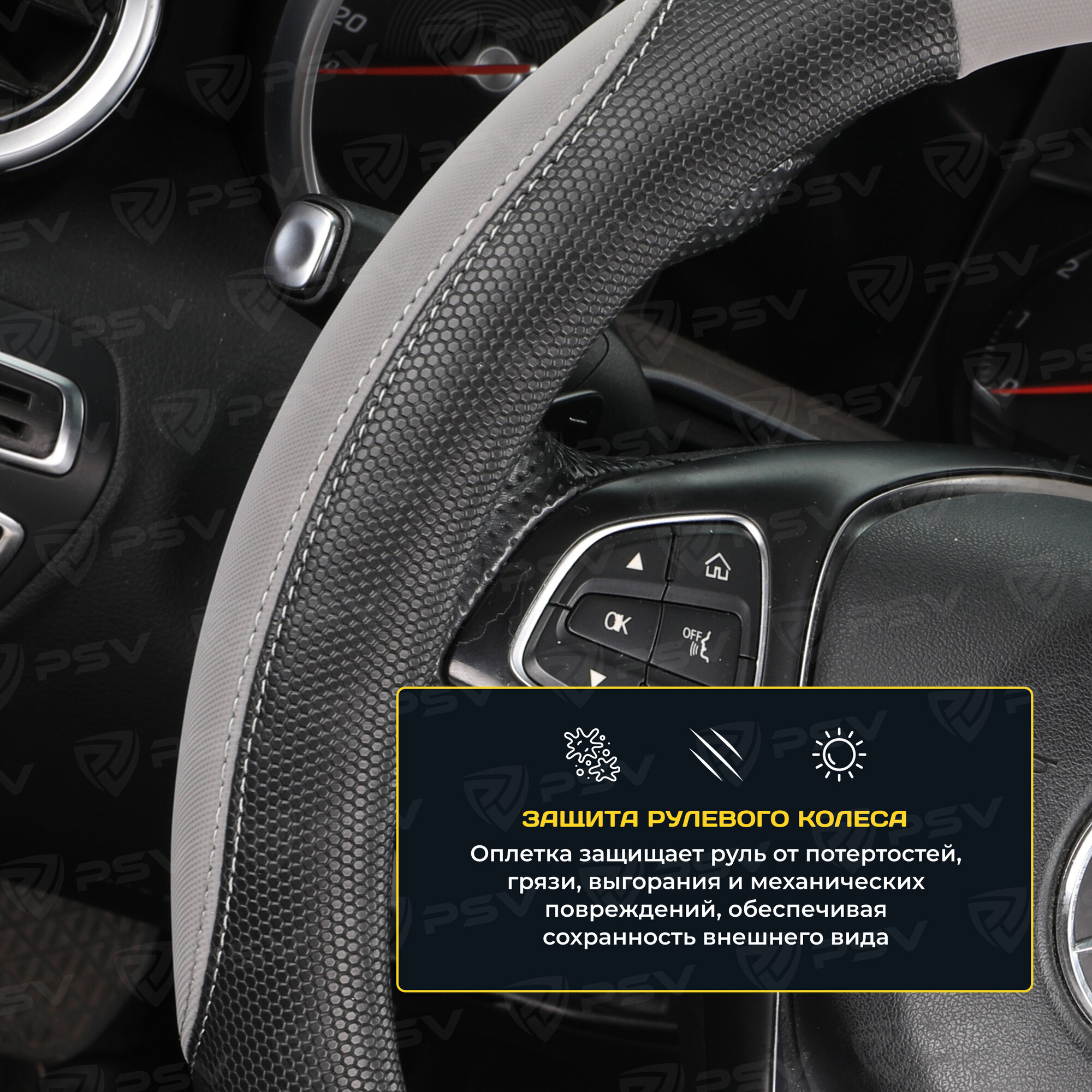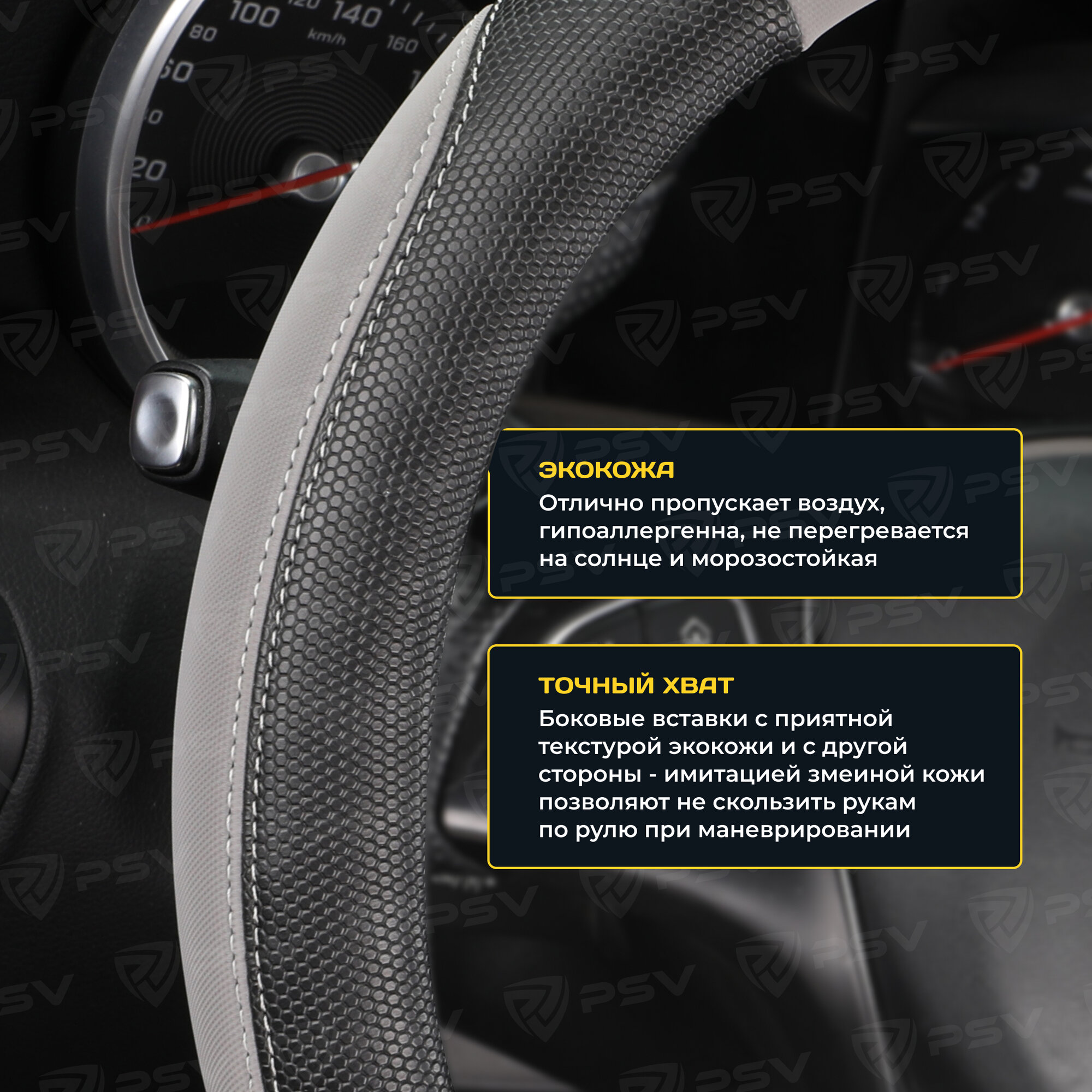 10 цен на Оплетка чехол на руль PSV SNAKE (Черно-Серый) M 37-39 см, экокожа, 136850