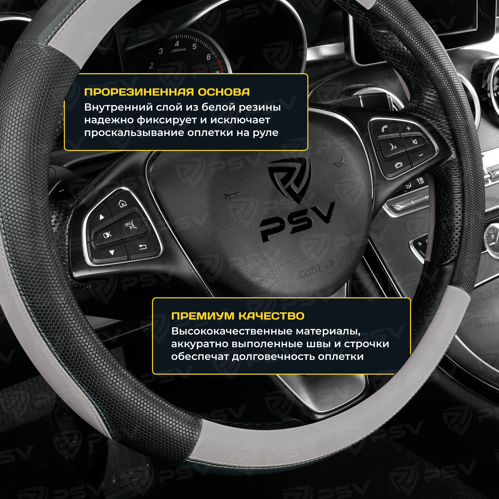 Оплетка чехол на руль PSV TERMIT (Черно-Бежевый) M 37-39 см, экокожа, 136862