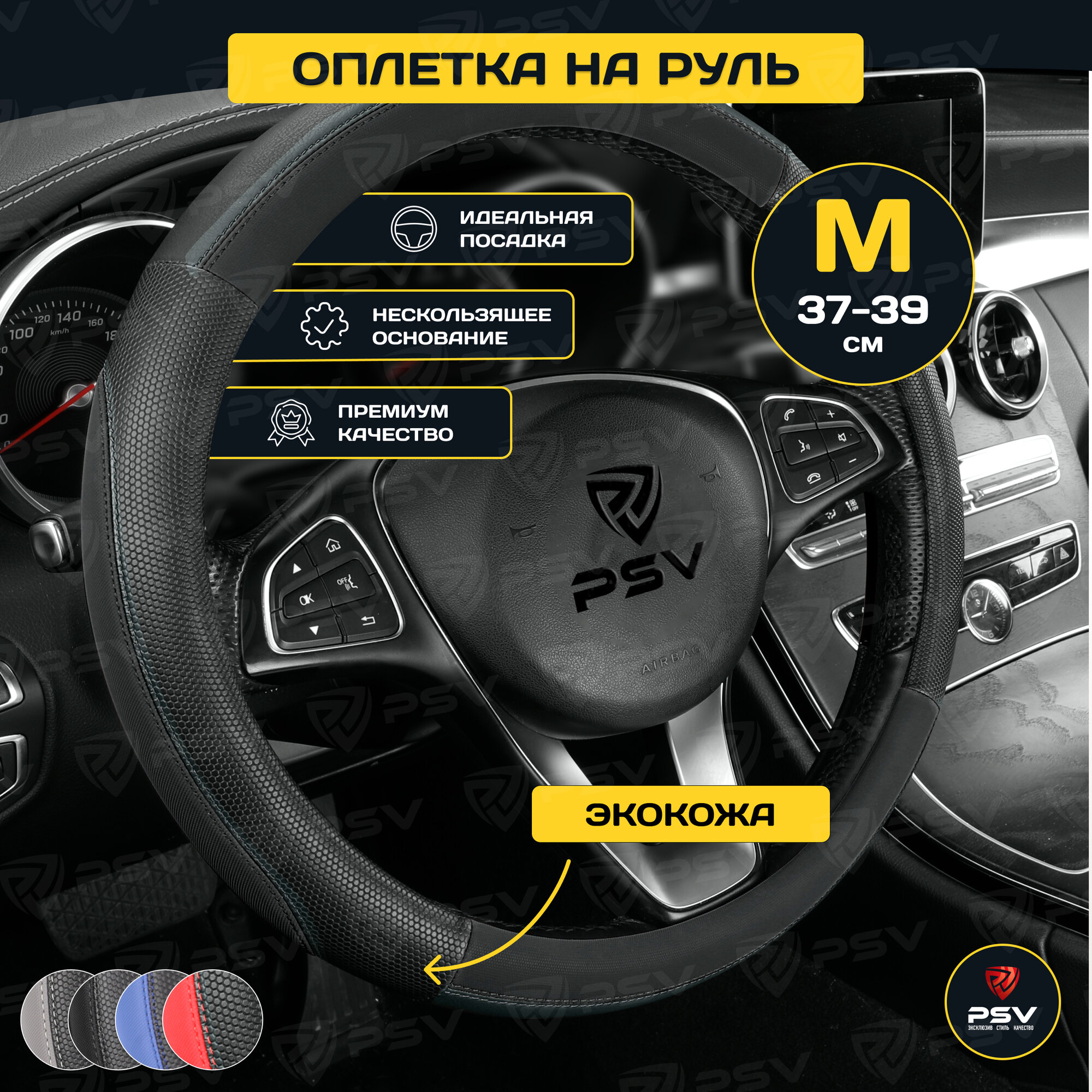 Оплетка руля M PSV Snake экокожа черная строчка черная PSV 136849 | цена за 1 шт 780 ₽
