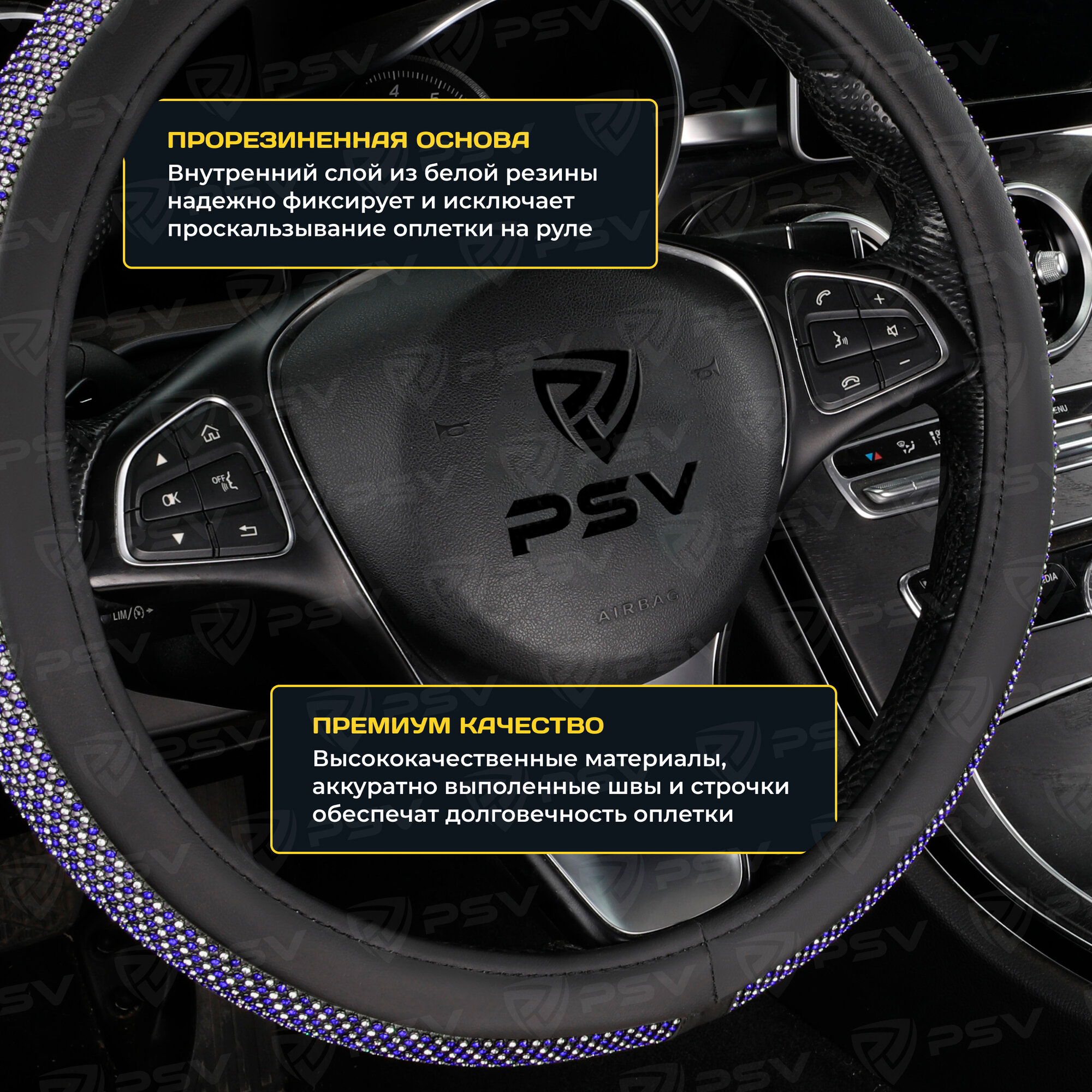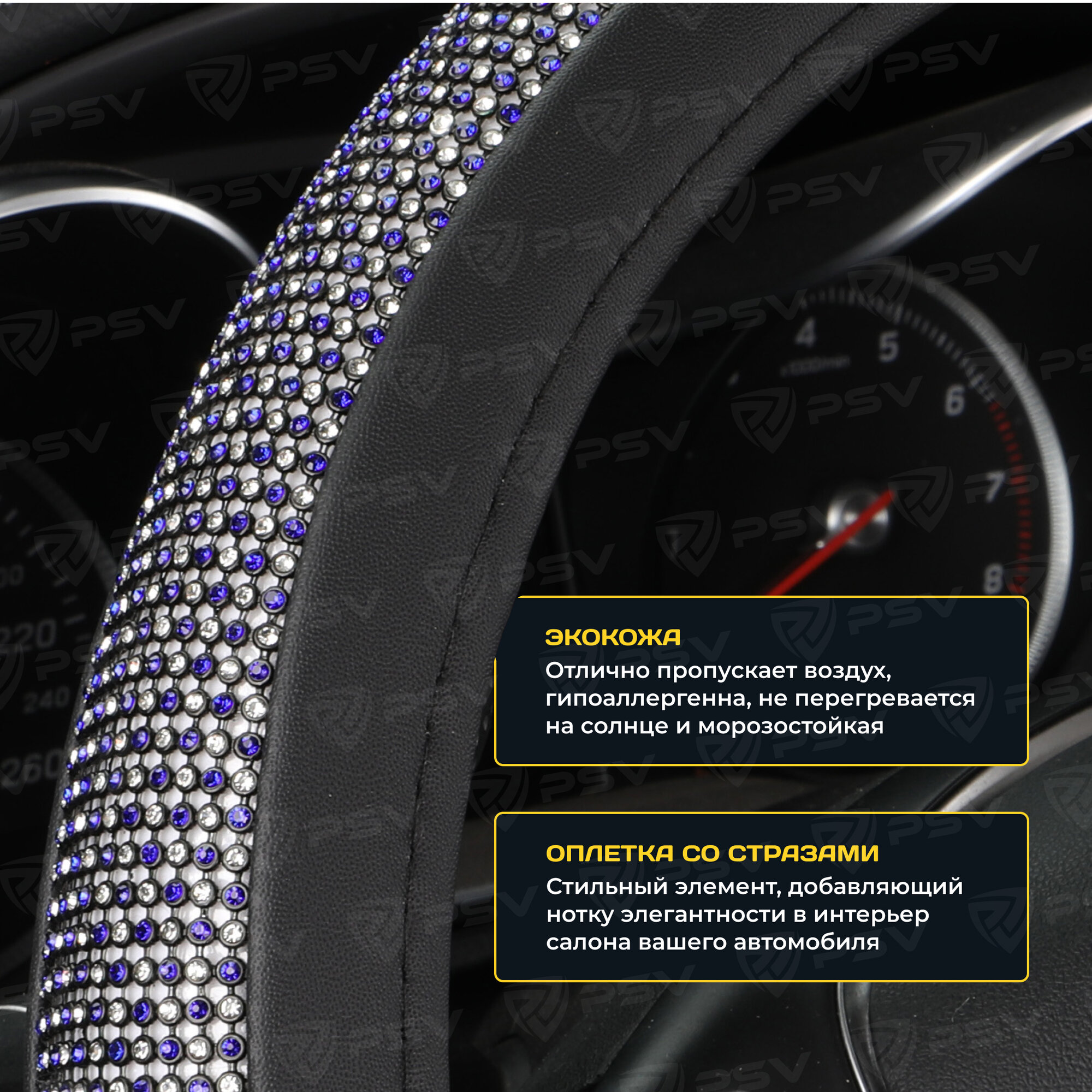 Оплетка руля M PSV Almaz экокожа стразы серебро/синяя PSV 136815 | цена за 1 шт 1 020 ₽