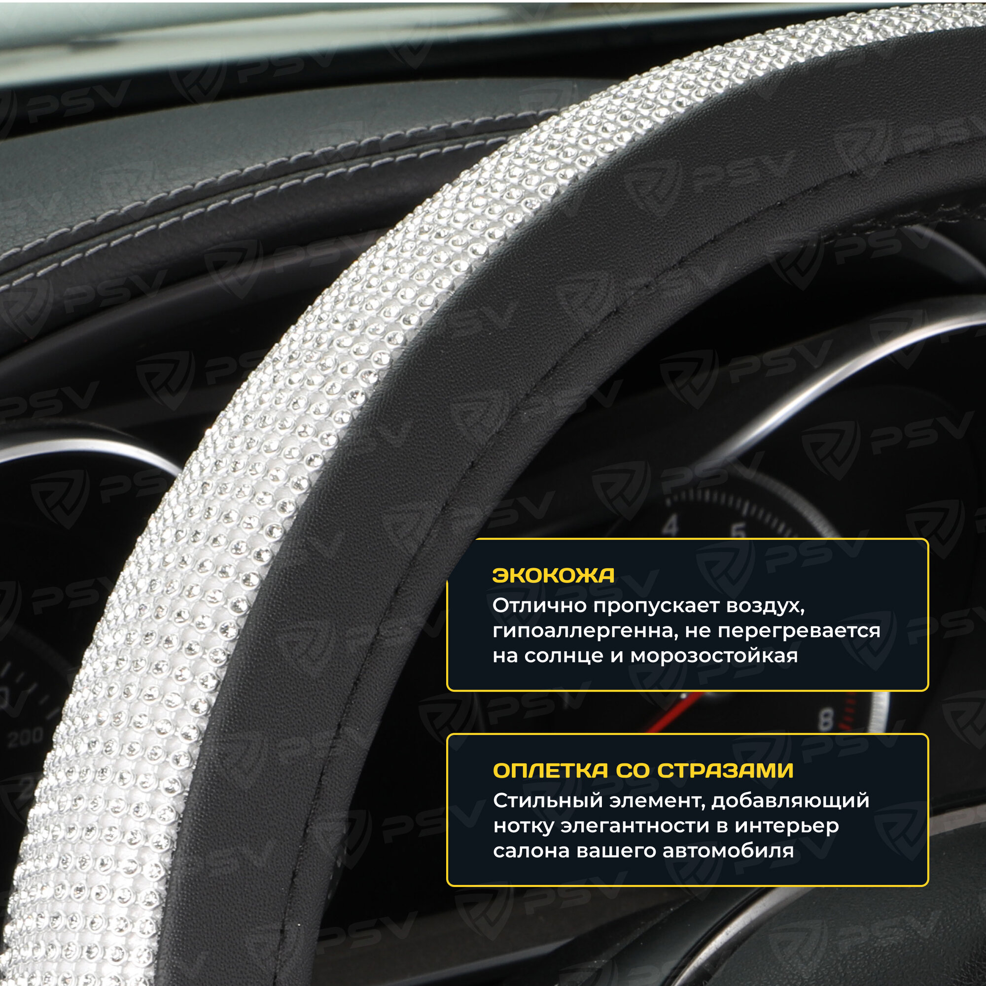 Оплетка руля M PSV Almaz Pro экокожа стразы золото PSV 136816 | цена за 1 шт 1 080 ₽