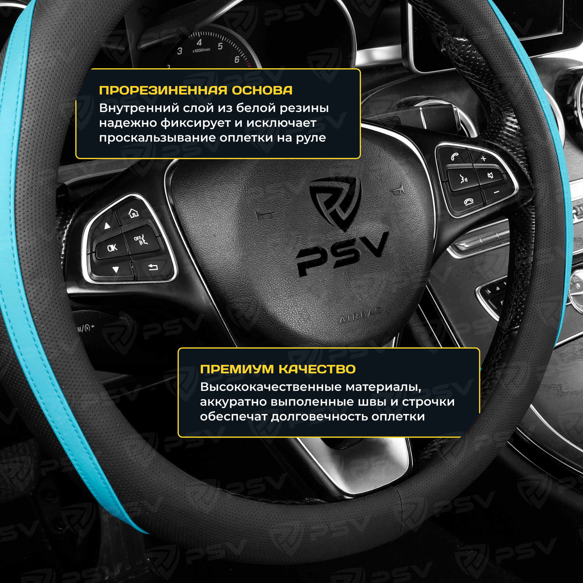 Оплетка руля M PSV Radikal экокожа черная с синей строчкой PSV 133074 | цена за 1 шт 1 020 ₽