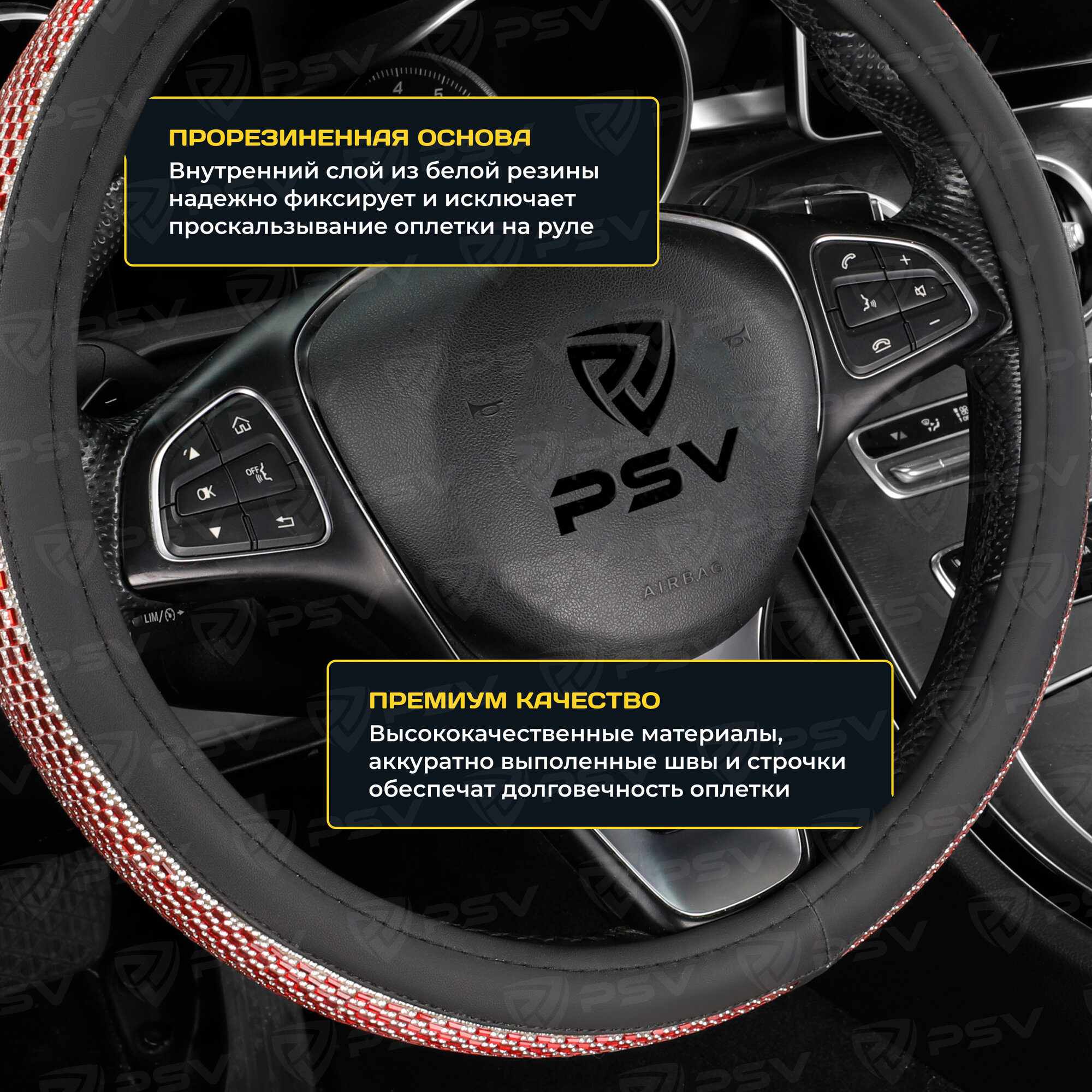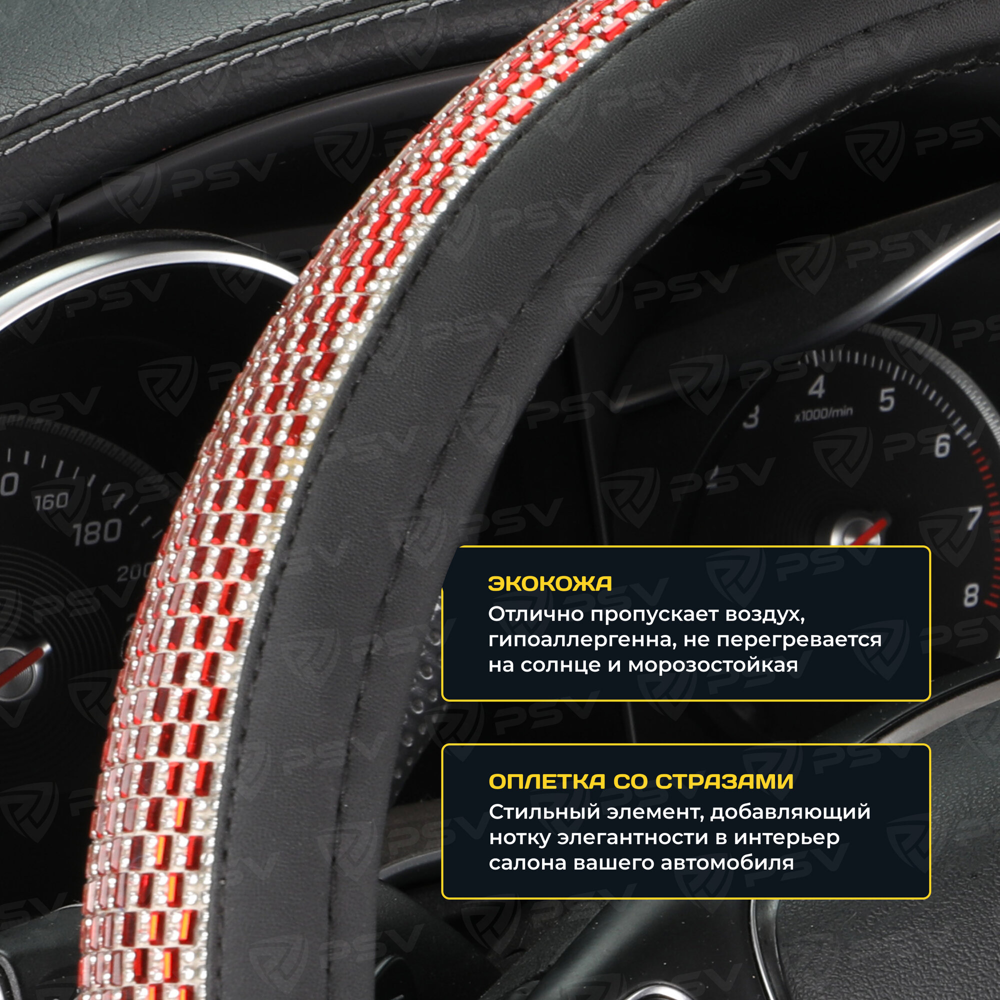 Оплетка руля M PSV Almaz Pro экокожа стразы красная PSV 136817 | цена за 1 шт 1 080 ₽