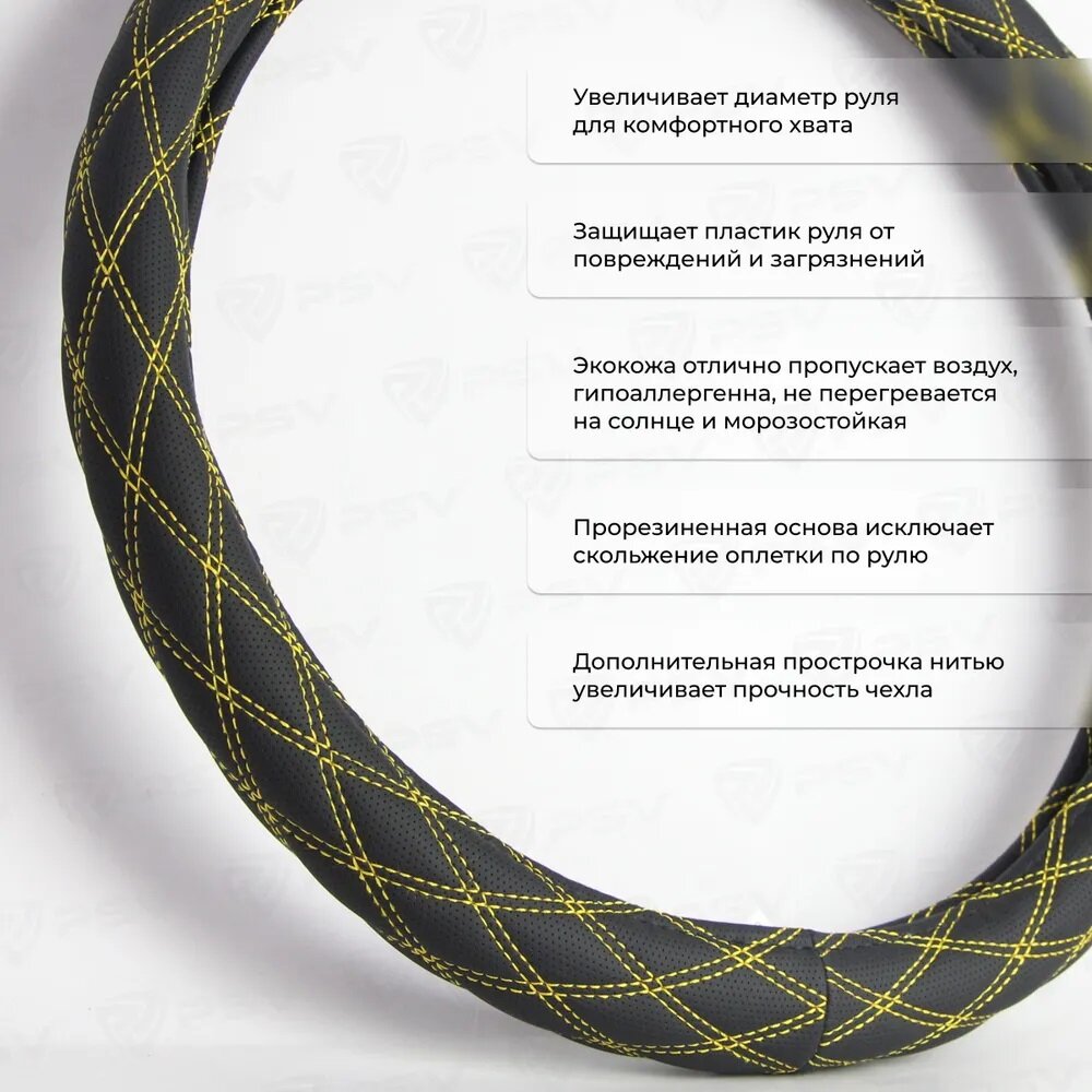 Оплетка чехол на руль PSV RADIKAL (Черный с желтой строчкой) M 37-39см, экокожа, 136033 информация: