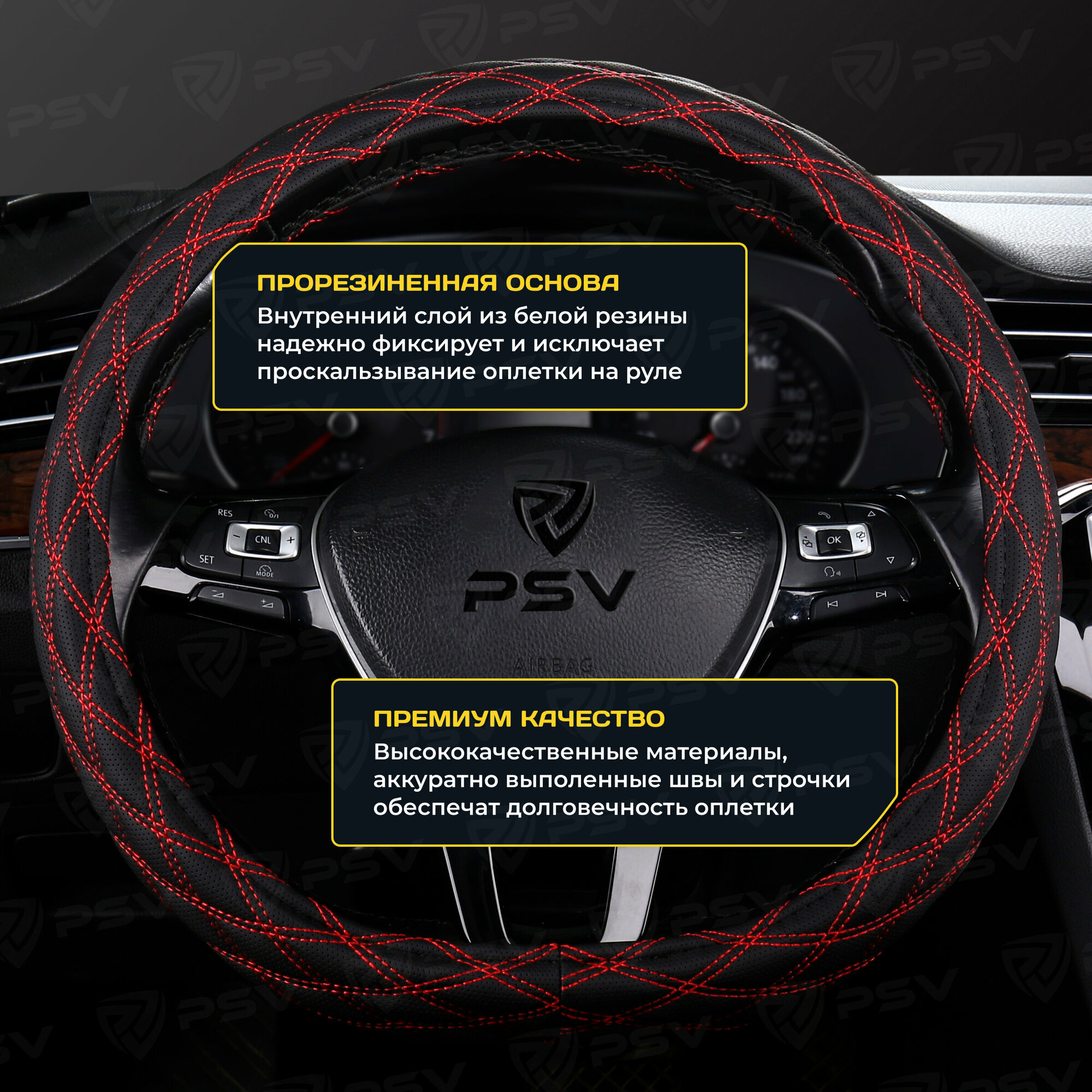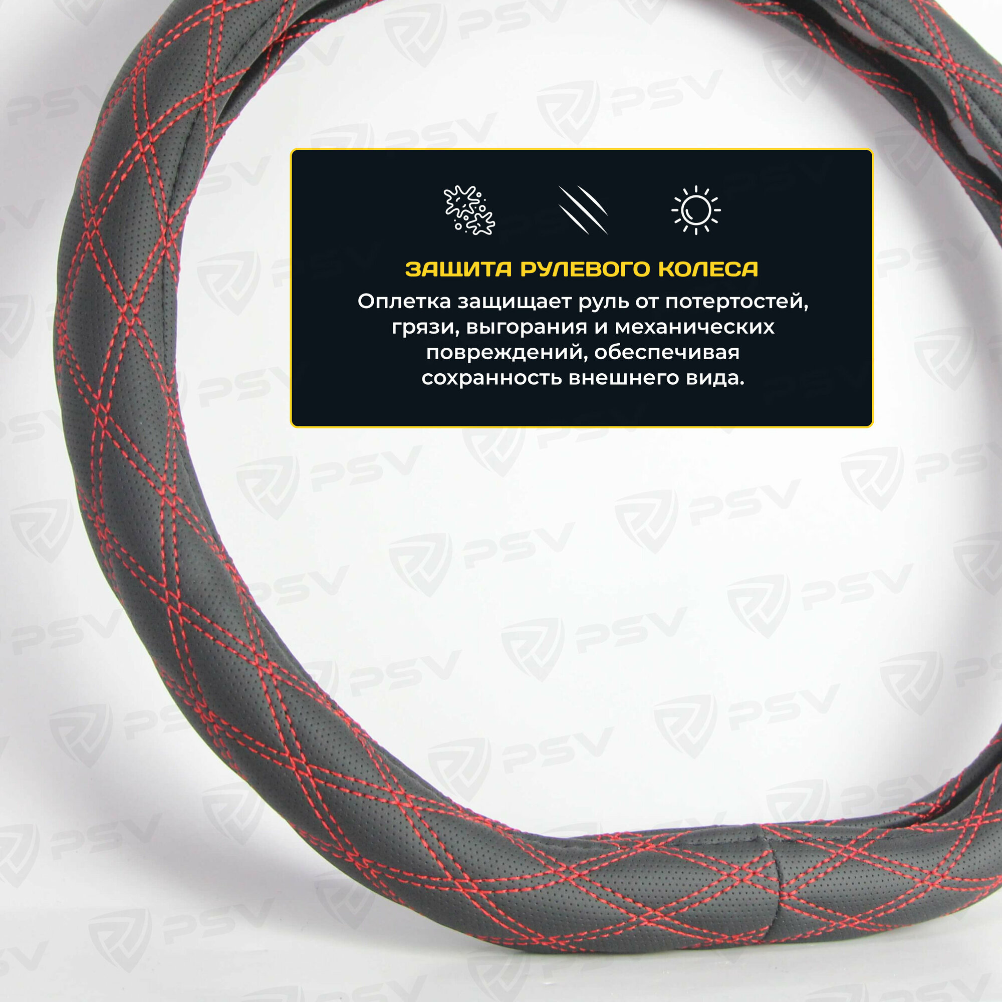 Оплетка чехол на руль PSV TERMIT (Черный с красной строчкой) M 37-39 см, экокожа, 136855 750 ₽