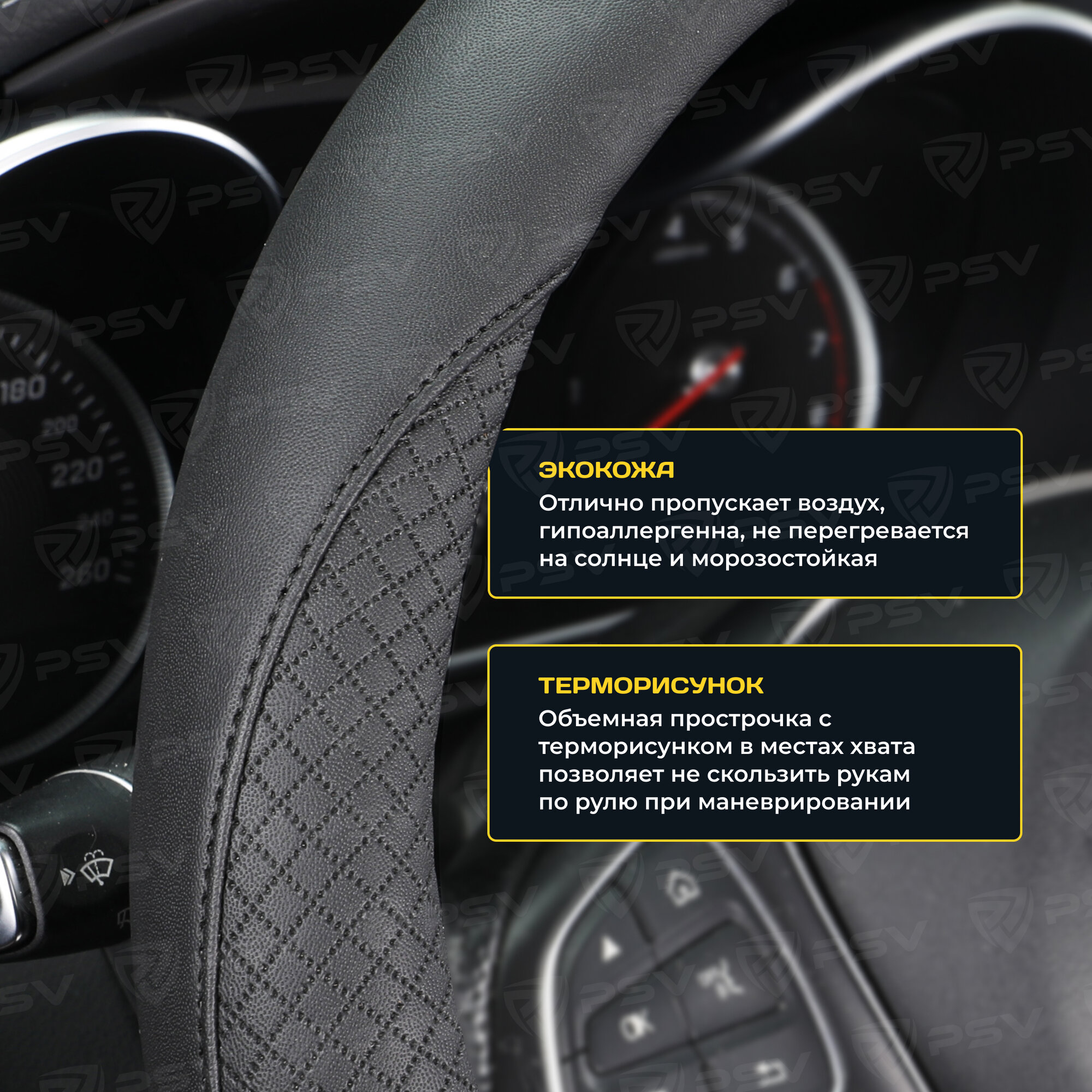 10 цен на Оплетка чехол на руль PSV GREAT (Черный, строчка черная) M 37-39 см, экокожа, 136824