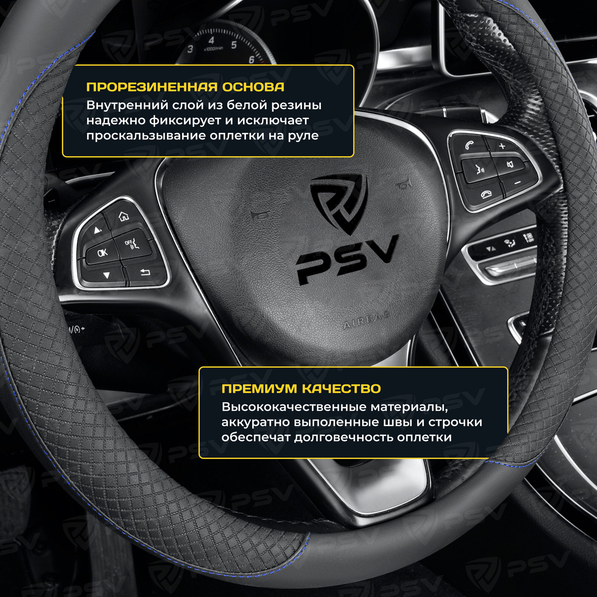 Отзывы на Оплетка чехол на руль PSV GREAT (Черный, строчка синяя) M 37-39 см, экокожа, 136827