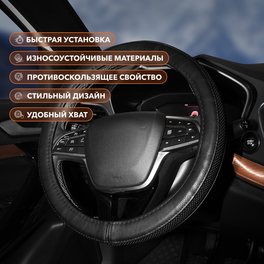 10 цен на Оплетка на руль комбинированная, гладкая/перфор. кожа, черная, 37-39 см/М