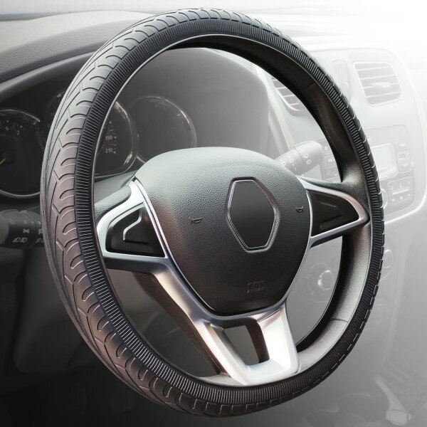 10 цен на Оплетка на руль универсальная из силикона «Шина» 34-42 см (чёрная) #21773