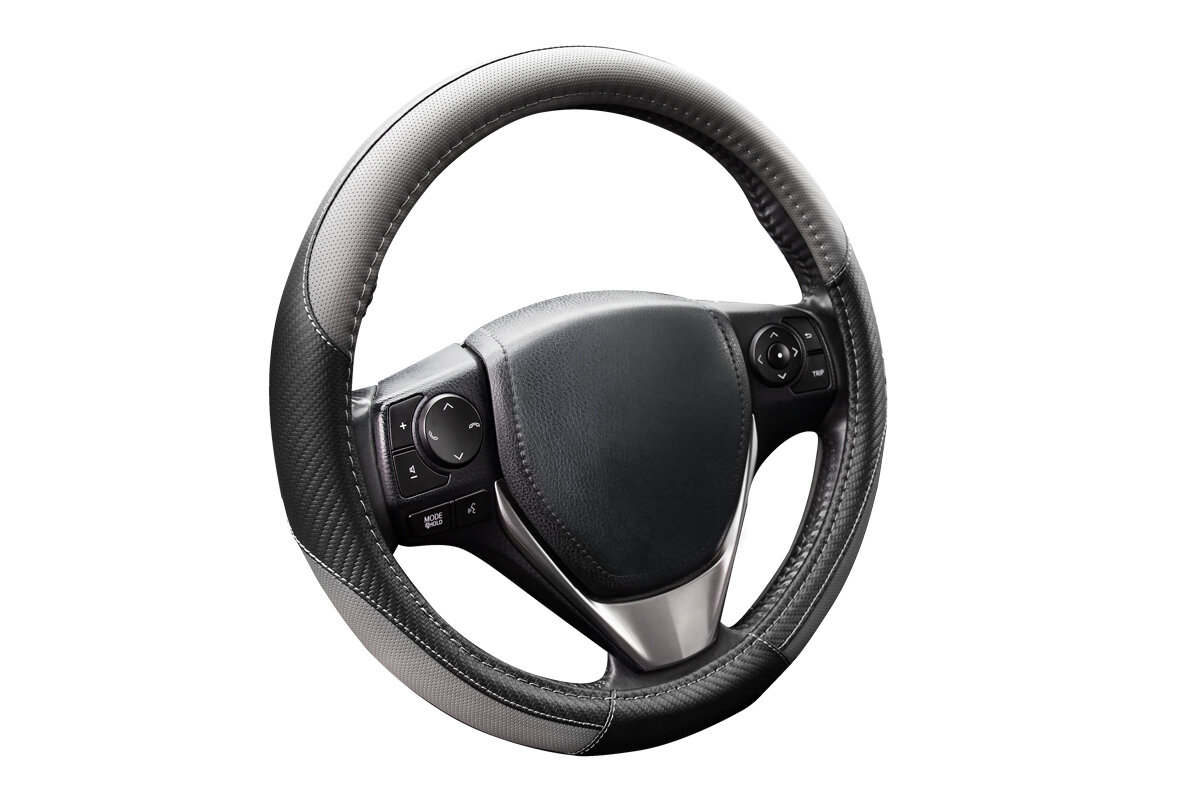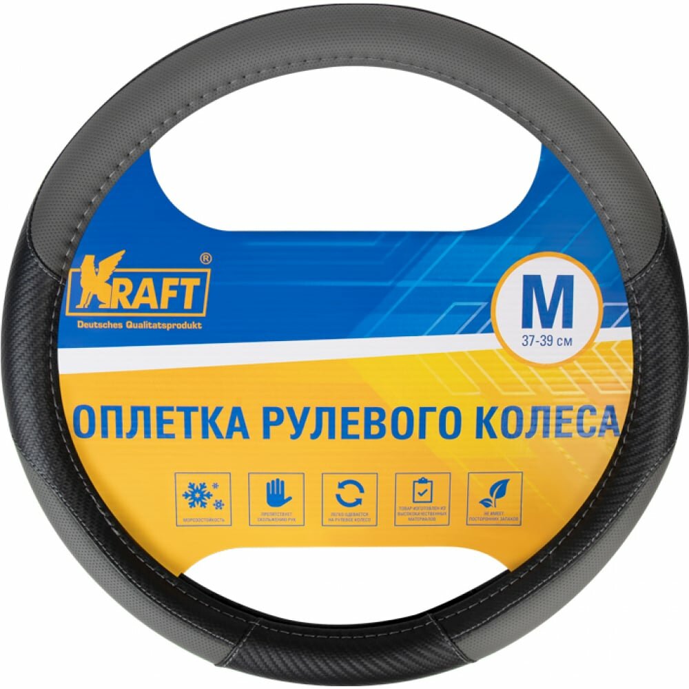 Оплетка на руль эко-кожа с текстурой карбоновых вставок Kraft размер "M" , 38 см , Черно-серая информация:
