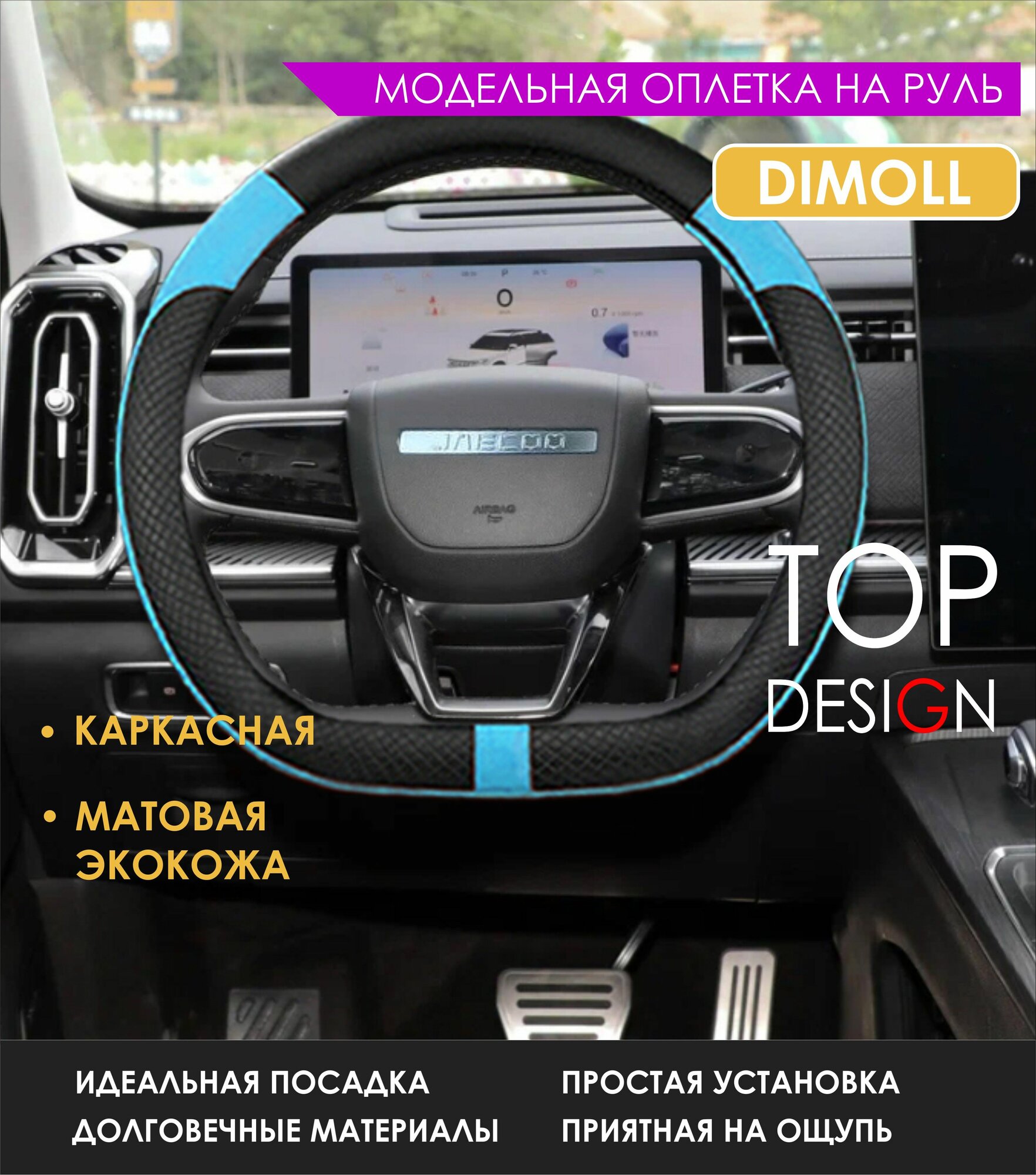 10 цен на Оплетка (чехол) на D-руль каркасная Jaecoo J7 2023 - н.в. экокожа, черная с голубой вставкой