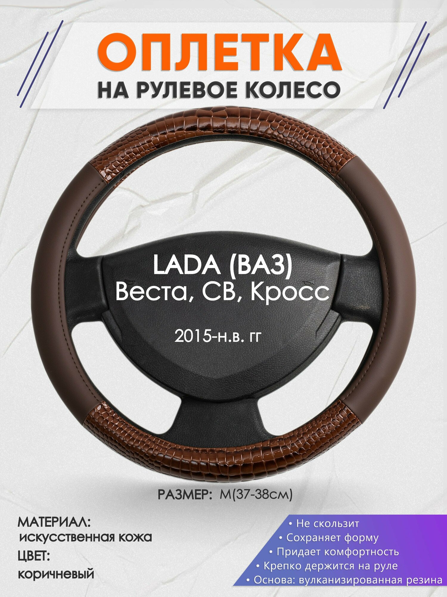 Оплетка на руль для LADA Веста, СВ, Кросс(Лада (ВАЗ)) 2015-н.в., M(37-38см), Искусственная кожа 85 информация: