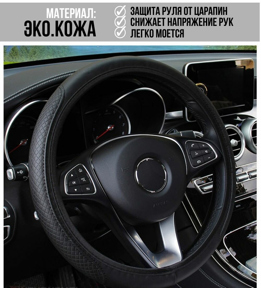 10 цен на Оплетка для руля автомобиля/ Good Ideas / черный чехол, диаметр 38 см