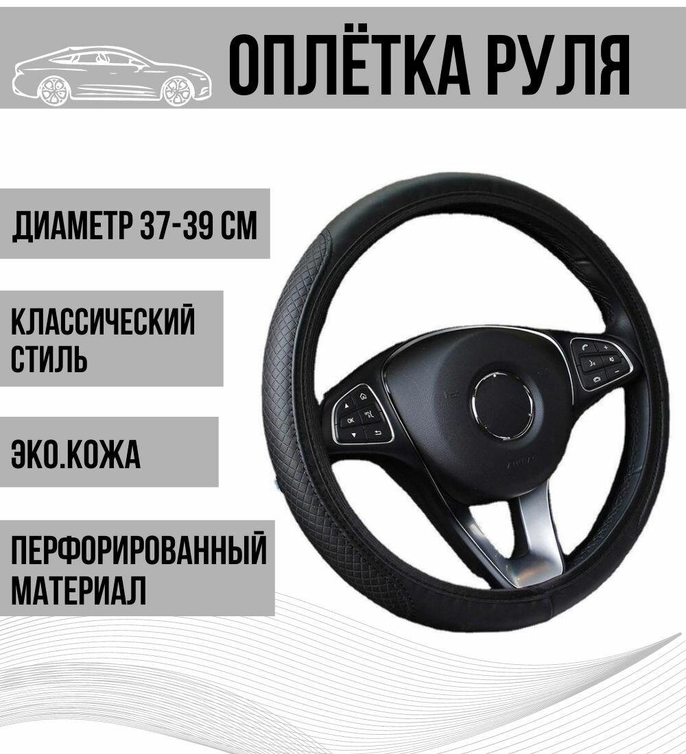 Оплетка для руля автомобиля/ Good Ideas / черный чехол, диаметр 38 см информация: