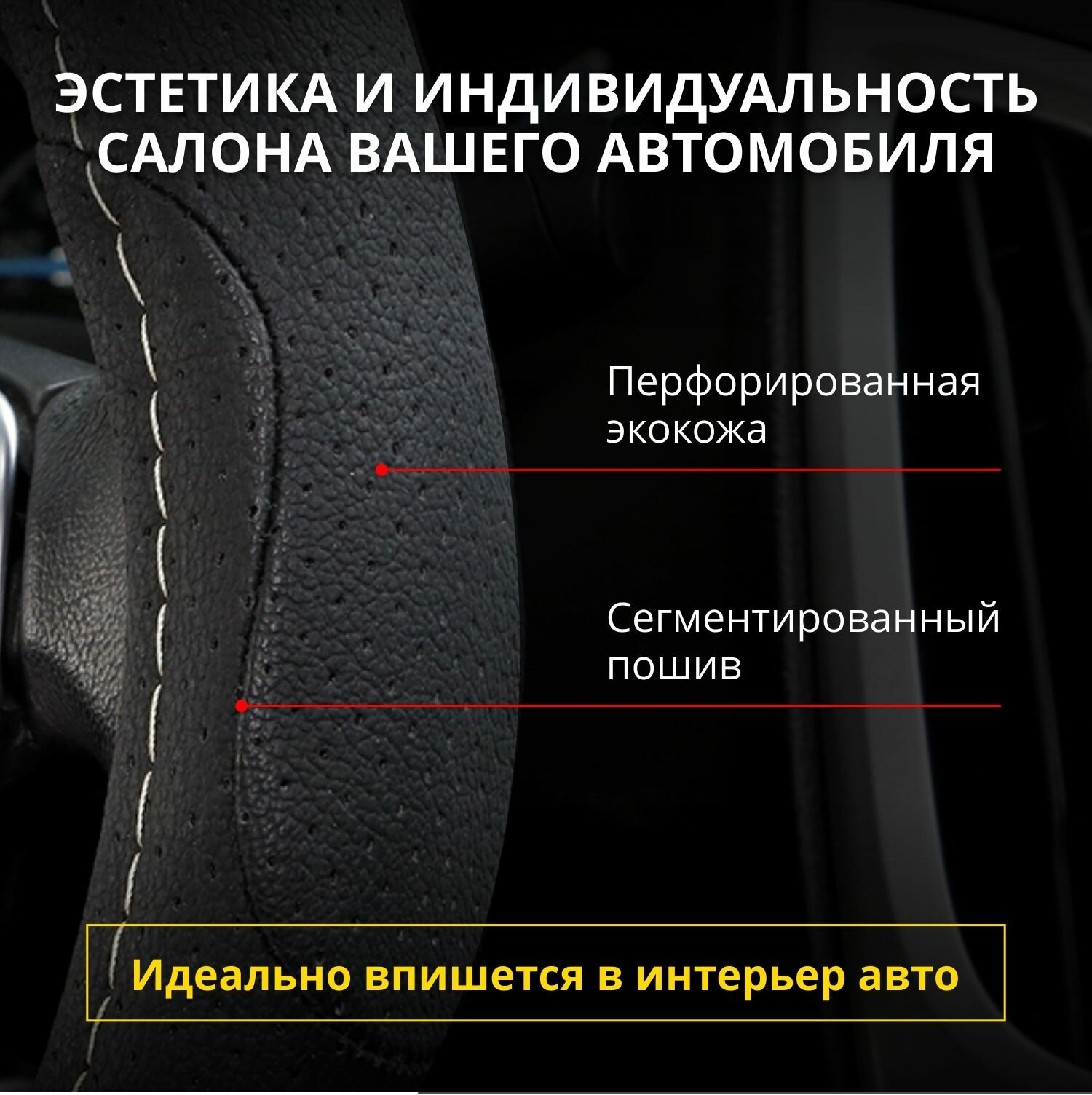 Премиальная оплетка Kaiyi E5, E3, X3 Pro, X7, Kunlun тюнинг / Чехол спортивный (форма D, размер М) диаметр 37-38 см, аксессуар в подарок