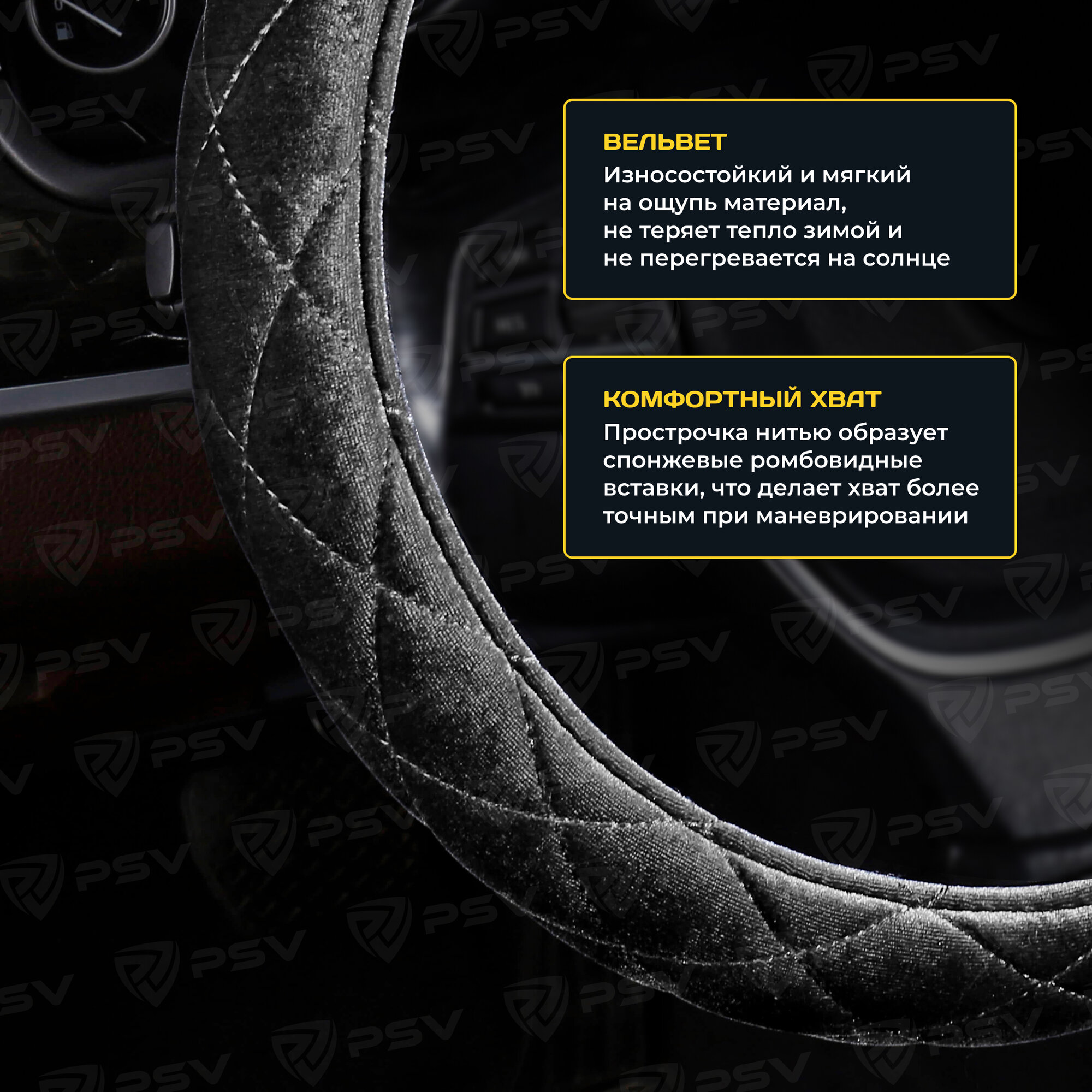 10 цен на Оплетка чехол на руль PSV CONVEX PRO (Черный) M 37-39 см, вельвет, 136084
