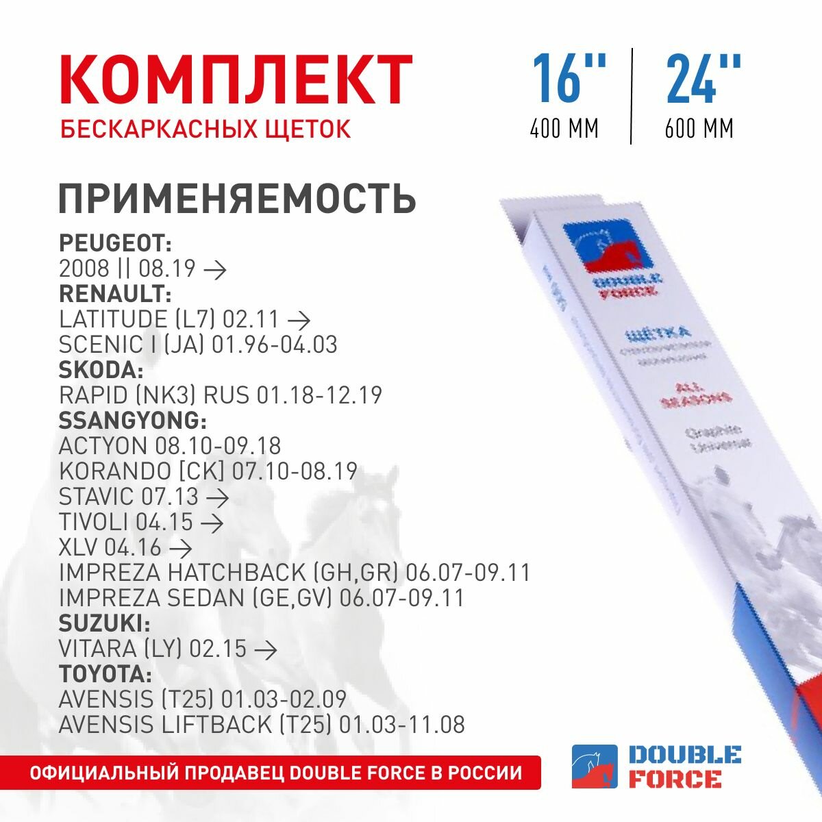 10 цен на Комплект бескаркасных щеток Double Force 24"(600мм)_16"(400мм) 2шт. DFF24-16 арт. DFF24-16