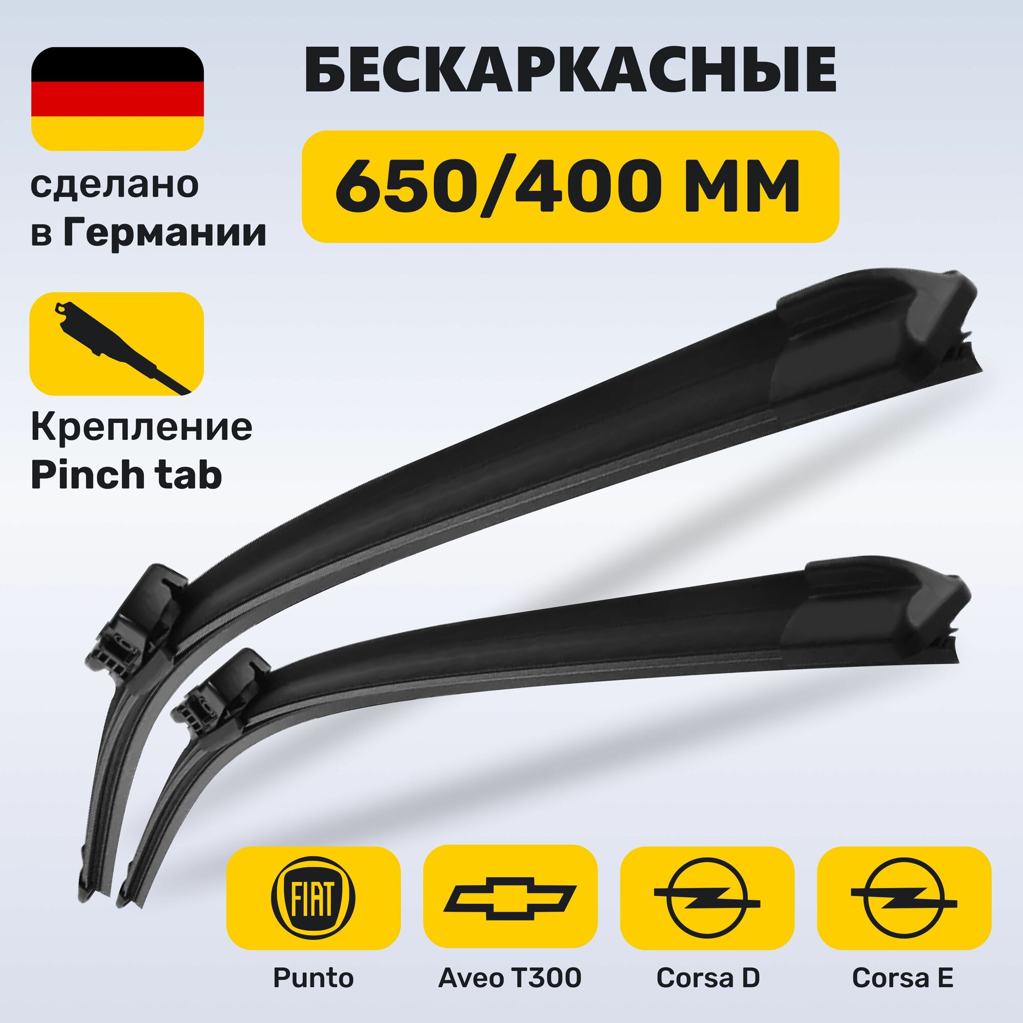 (Германия) щетки стеклоочистителя 650/400, бескаркасные дворники Шевроле Авео Т300; Опель Корса Д; Опель Корса Е; Фиат Пунто 2012-2018 информация:
