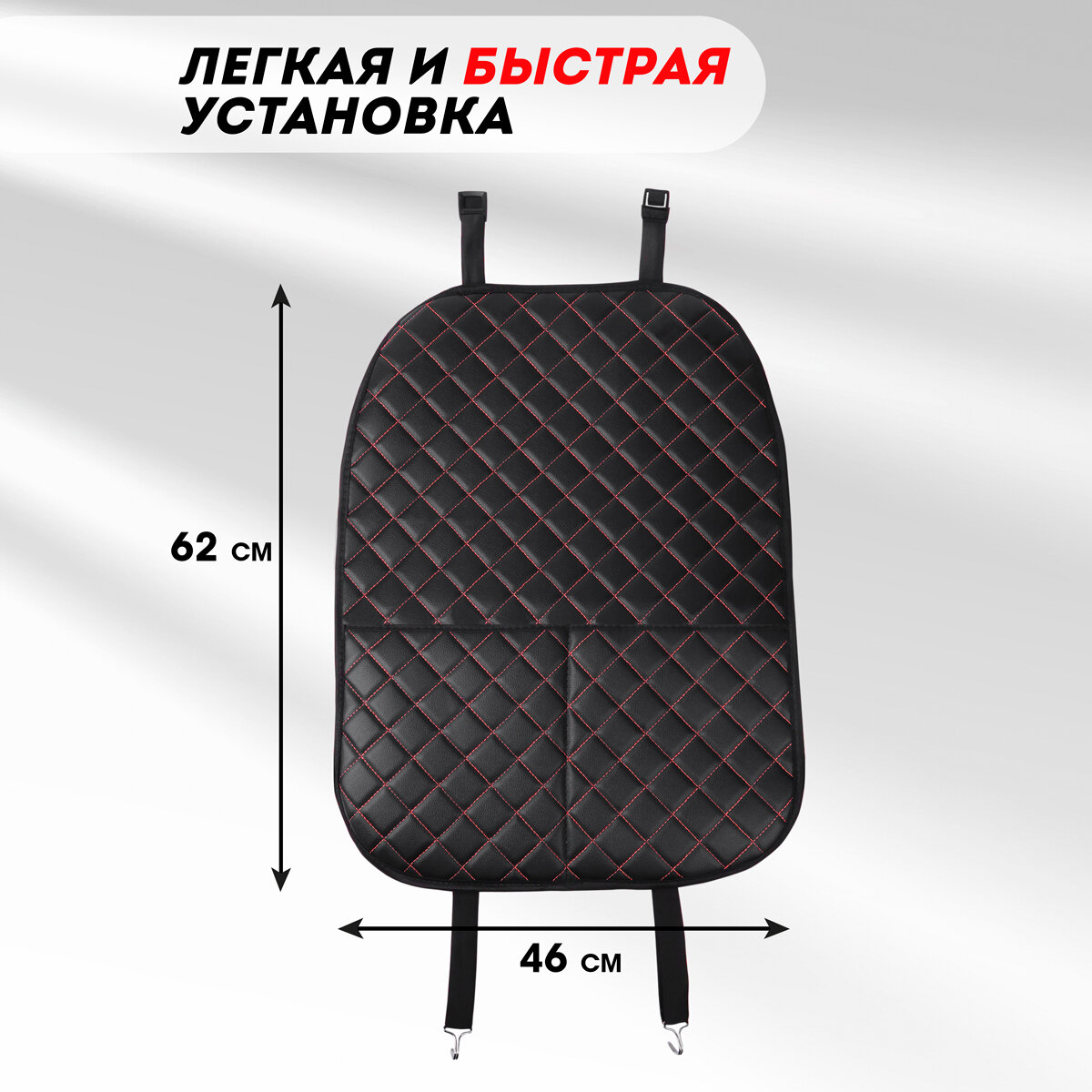 Защитная накидка на спинку сиденья. Защита от детских ног. Черный, красная строчка информация: