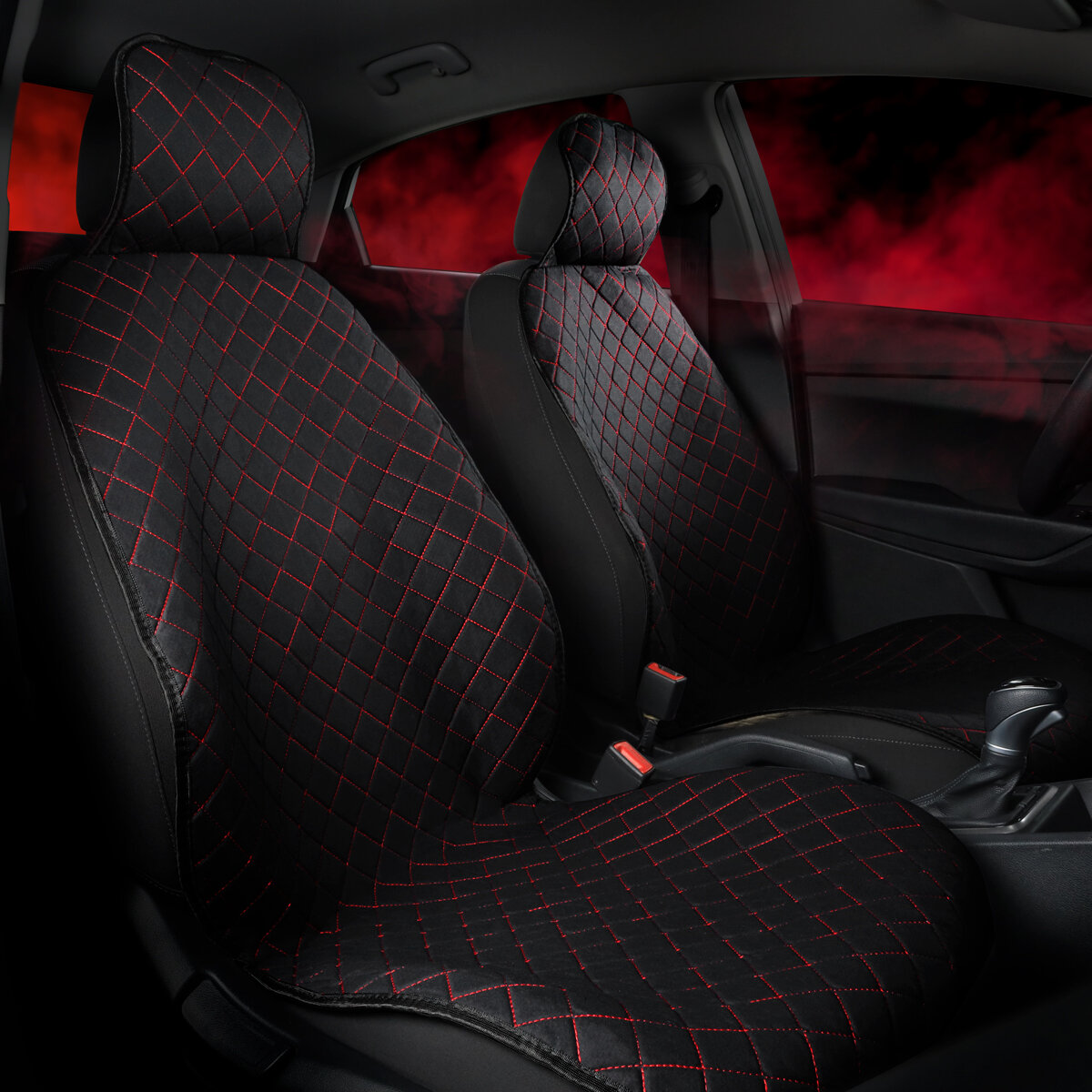 10 цен на CarCape/ Накидки чехлы на передние сиденья автомобиля из льна 2 шт. Модель AMSTERDAM. Черный/красная строчка