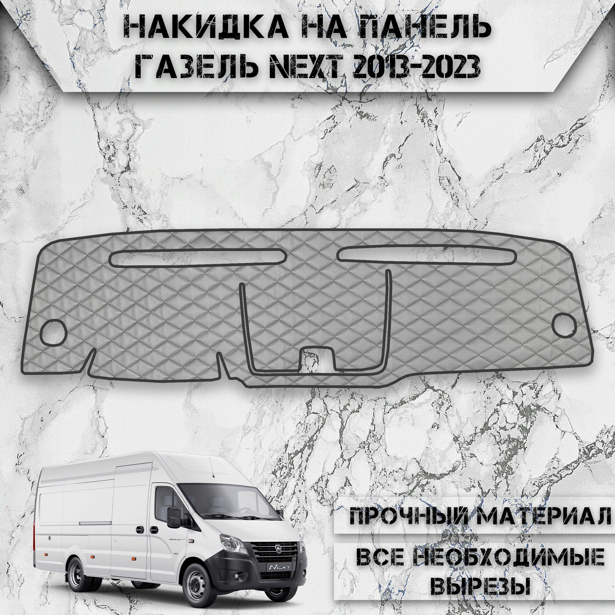 Отзывы на Накидка на панель приборов для ГАЗ NEXT / Газель Некст 2013-2023 Г.В. из Экокожи Серая с чёрной строчкой