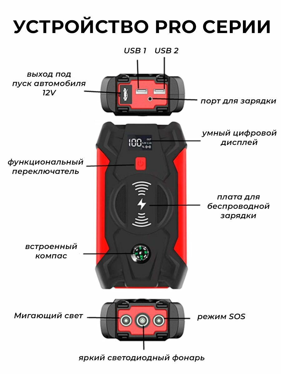10 цен на Пусковое зарядное устройство, 99800мАч, бустер серии PRO, SMART, с функцией POWER BANK, Повербанк, Jump starter, подарок мужу на новый год