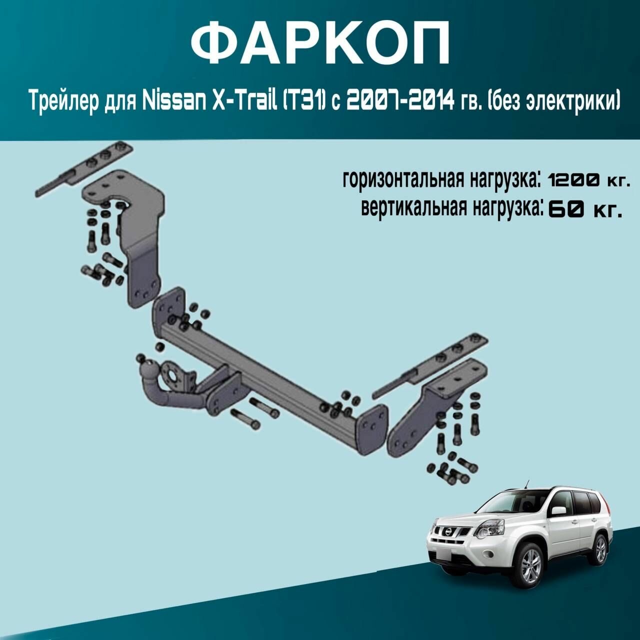 Фаркоп Трейлер для Nissan X-Trail (T31) с 2007-2014 гв. (без электрики) информация: