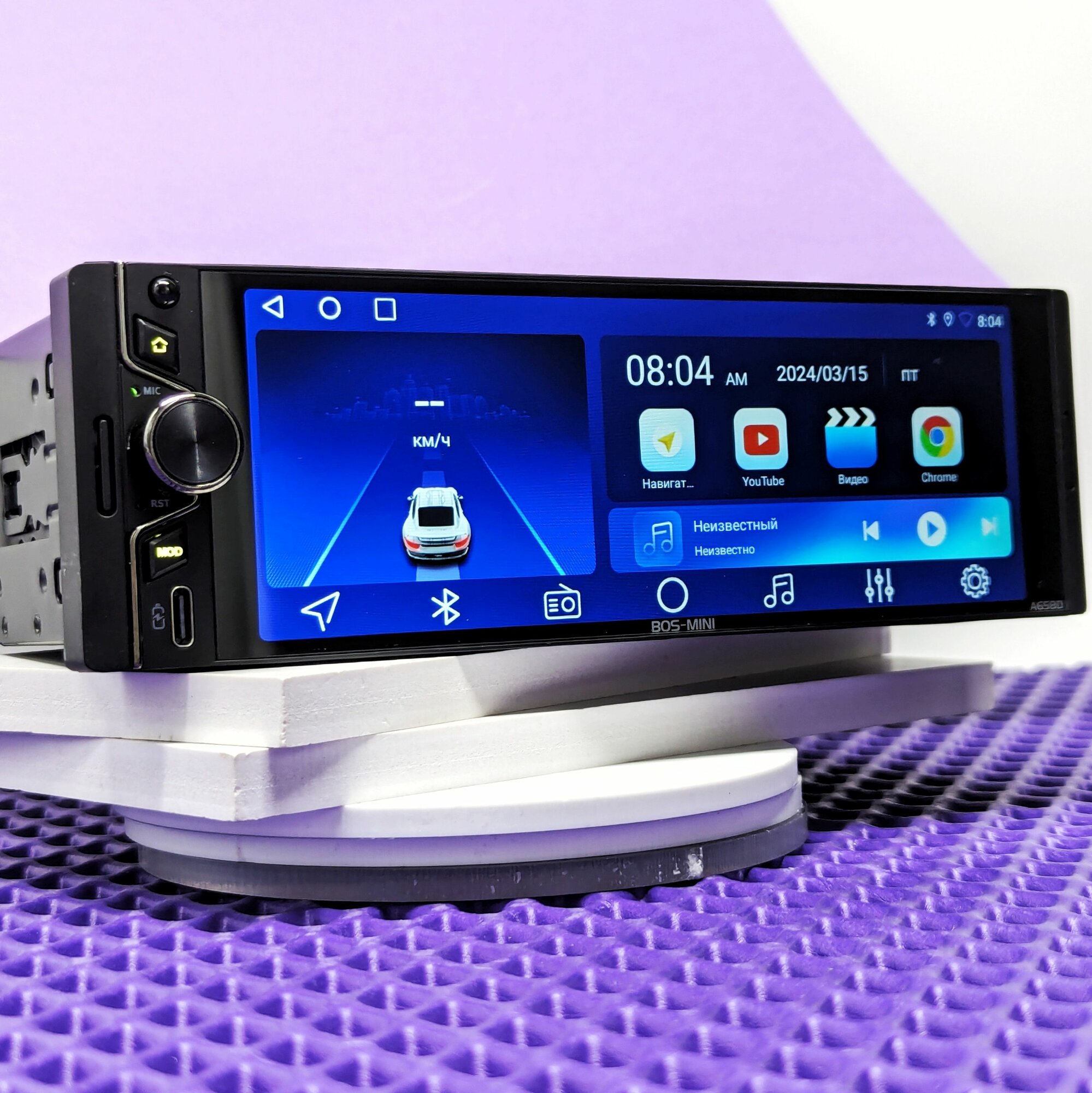 Отзывы на Автомагнитола 1DIN на Андройде с крутилкой звука с CarPlay с USB Type-C, wi-fi, bluetooth - память 2+32 BOS-A658D