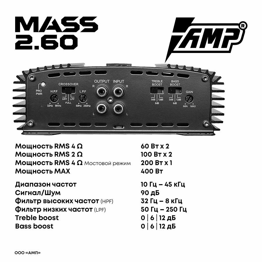 10 цен на Комплект усилителя AMP MASS 2.60 с проводами для установки