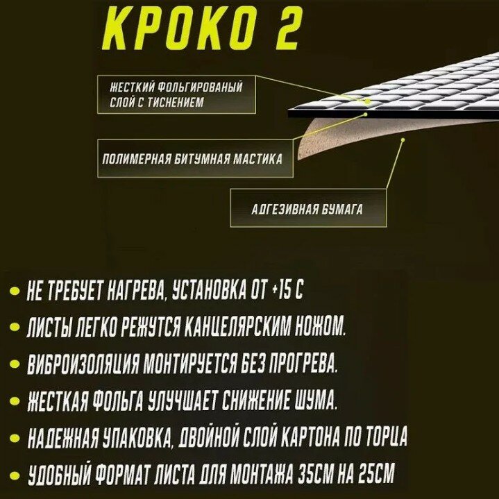 Шумоизоляция для автомобиля Кроко 2 by Шумология 25 листов (35*25см) информация: