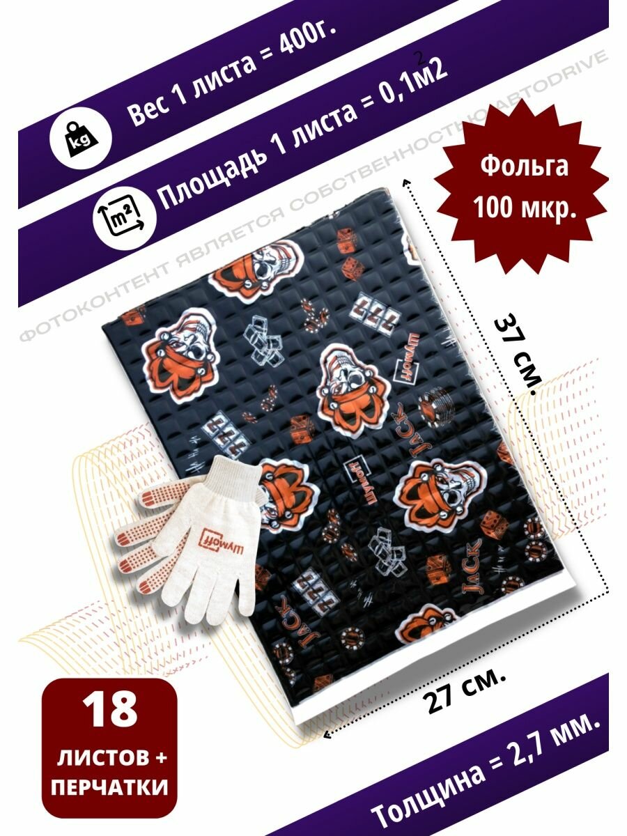 Шумоизоляция для автомобиля Блек Джек 18 листов. Толщина 2,7 мм = 4 мм. Виброизоляция авто, вибропласт, вибродемпфер, шумка в машину. Шумоизоляция для дверей, крыши, потолка, пола, багажника, арок Шумоff Black Jack. Шумоизоляция стояка, труб, ванны информация:
