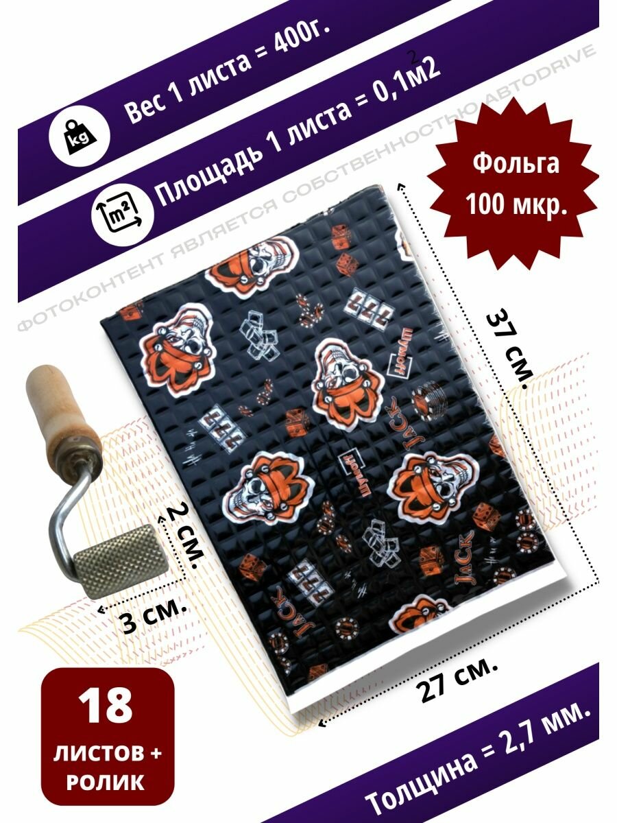 Виброизоляция + прикаточный ролик для шумоизоляции Блек Джек 18л. Шумоизоляция для автомобиля, вибропласт, вибродемпфер, шумка в авто с прикаточным валиком Шумоff Black Jack. информация: