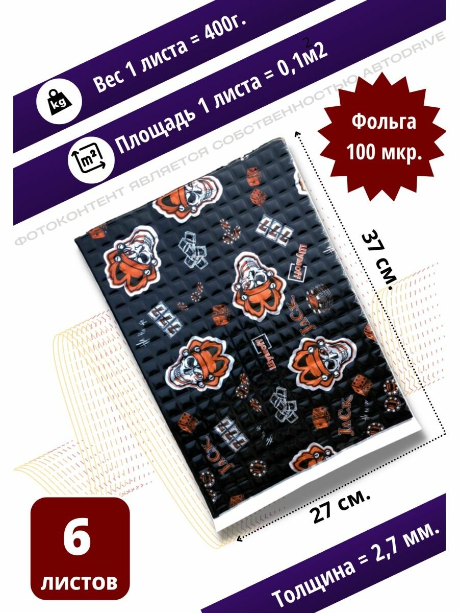 Шумоизоляция для автомобиля Блек Джек 6 листов. Толщина 2,7 мм = 4 мм. Виброизоляция авто, вибропласт, вибродемпфер, шумка в машину. Шумоизоляция для дверей, крыши, потолка, пола, багажника, арок Шумоff Black Jack. Шумоизоляция стояка, труб, ванны информация: